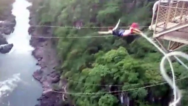 Bon, la fille est vivante, mais imaginez si elle était morte, comme c’est déjà arrivé à des sauteurs en bungee, pas souvent, je sais, mais quand même, c’est déjà arrivé. Il est mort. Mort de quoi? Mort en bungee. Il a sauté de très haut, les pieds attachés à une corde, la corde a lâché, il est mort. Et pourquoi a-t-il sauté? Pour avoir des sensations fortes. Il est mort parce qu’il voulait avoir des sensations fortes.