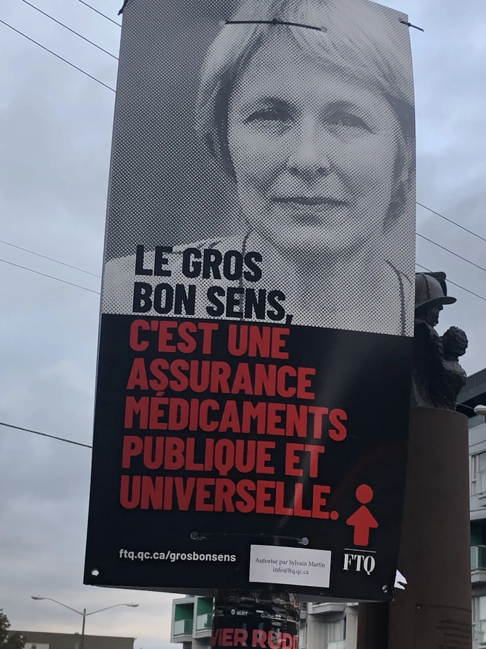 Par exemple, vous avez peut-être remarqué cette semaine les affiches de la plus importante centrale d’ici, la Fédération des travailleurs et des travailleuses du Québec (FTQ), apparaître sur un poteau près de chez vous.