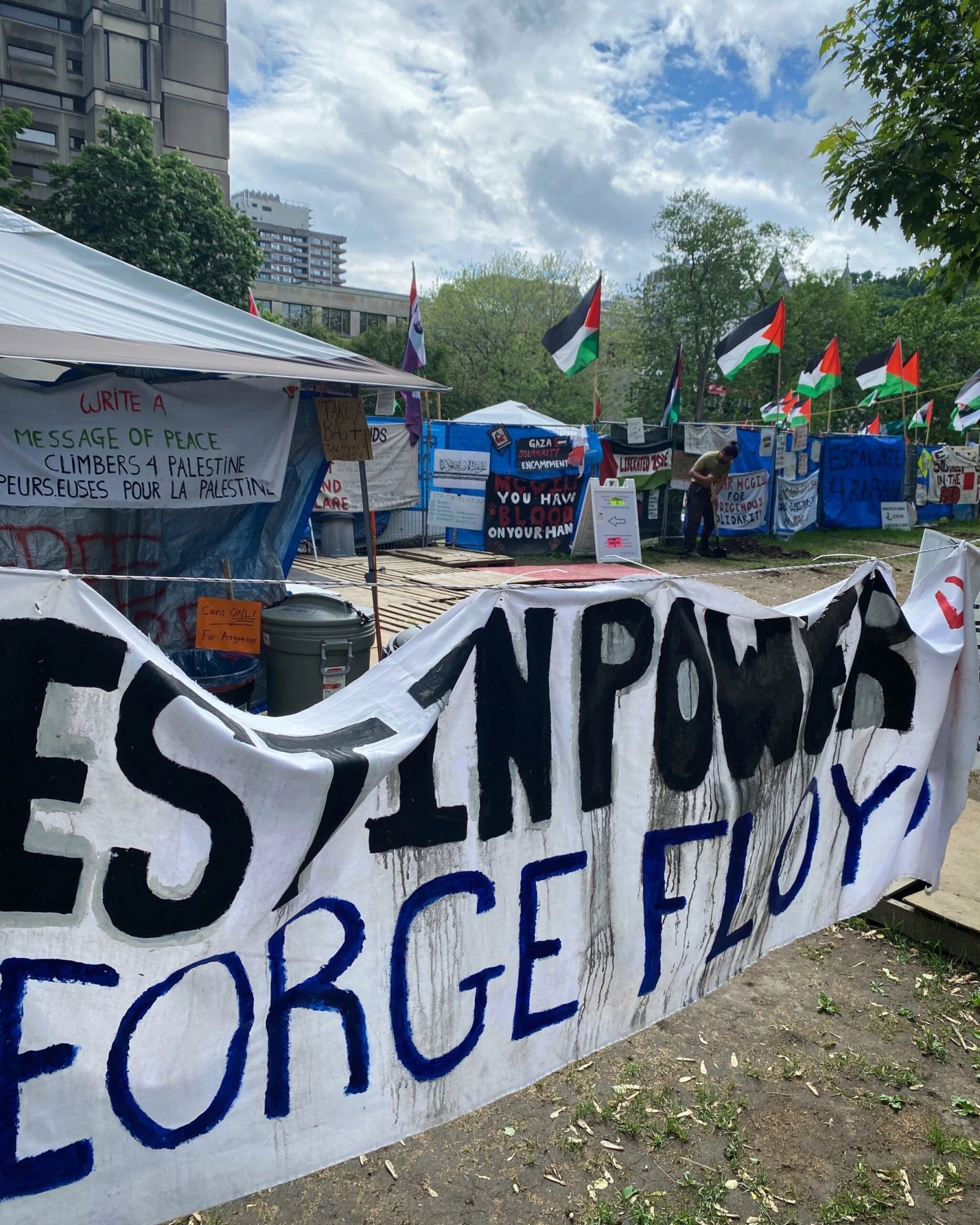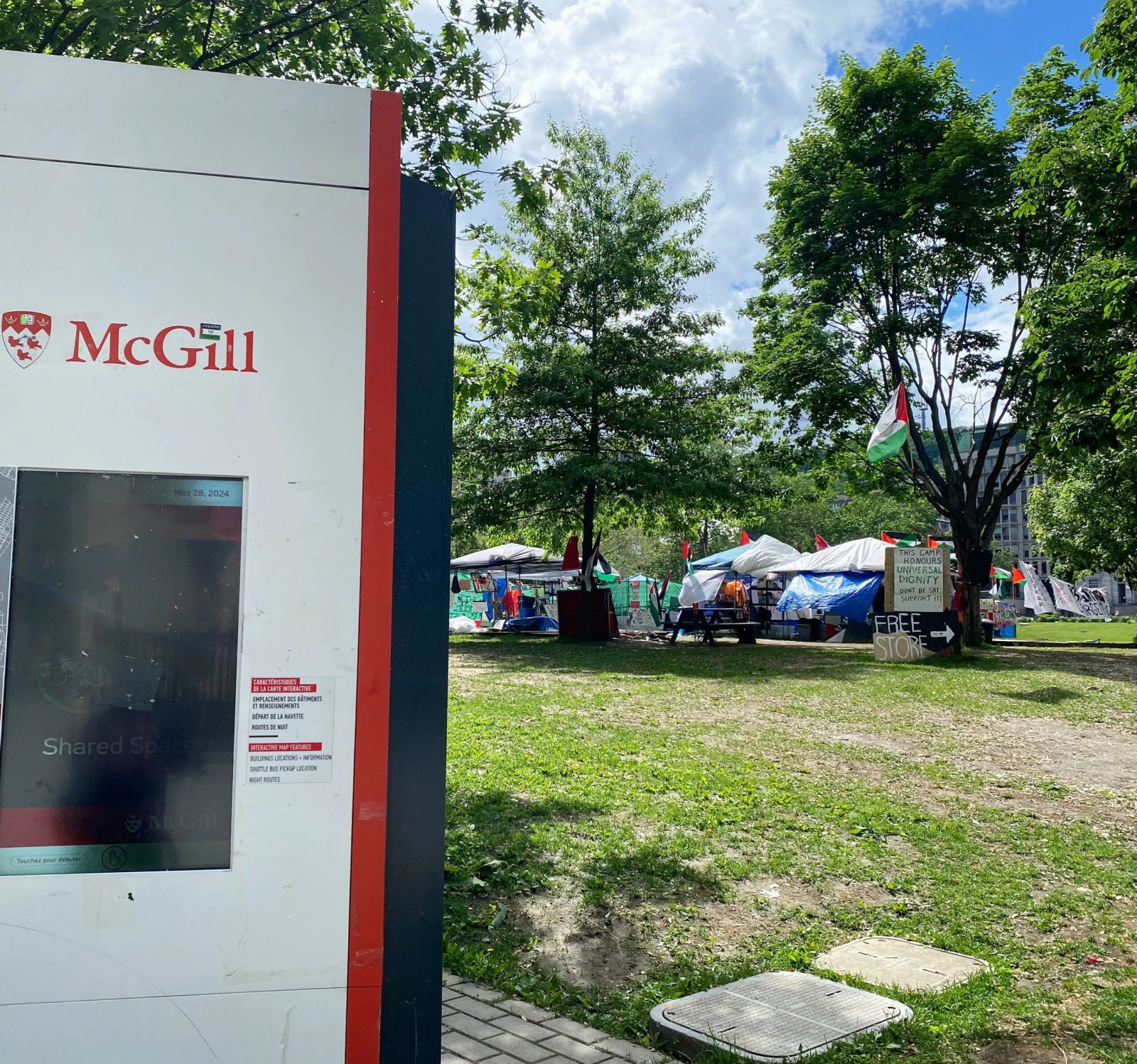 La tension est ici plus légitime. Le terrain a notamment été le théâtre de manifestations propalestiniennes et pro-israéliennes, sous forte surveillance policière. Ajoutez à ça une nouvelle demande d’injonction déposée par McGill pour démanteler le campement, après avoir échoué à convaincre la Cour qu’il représente « un tort sérieux ou irréparable ». De leur côté, les étudiants reprochent à McGill d’investir des millions de dollars dans des compagnies qui endossent ou contribuent aux violences dans la bande de Gaza.