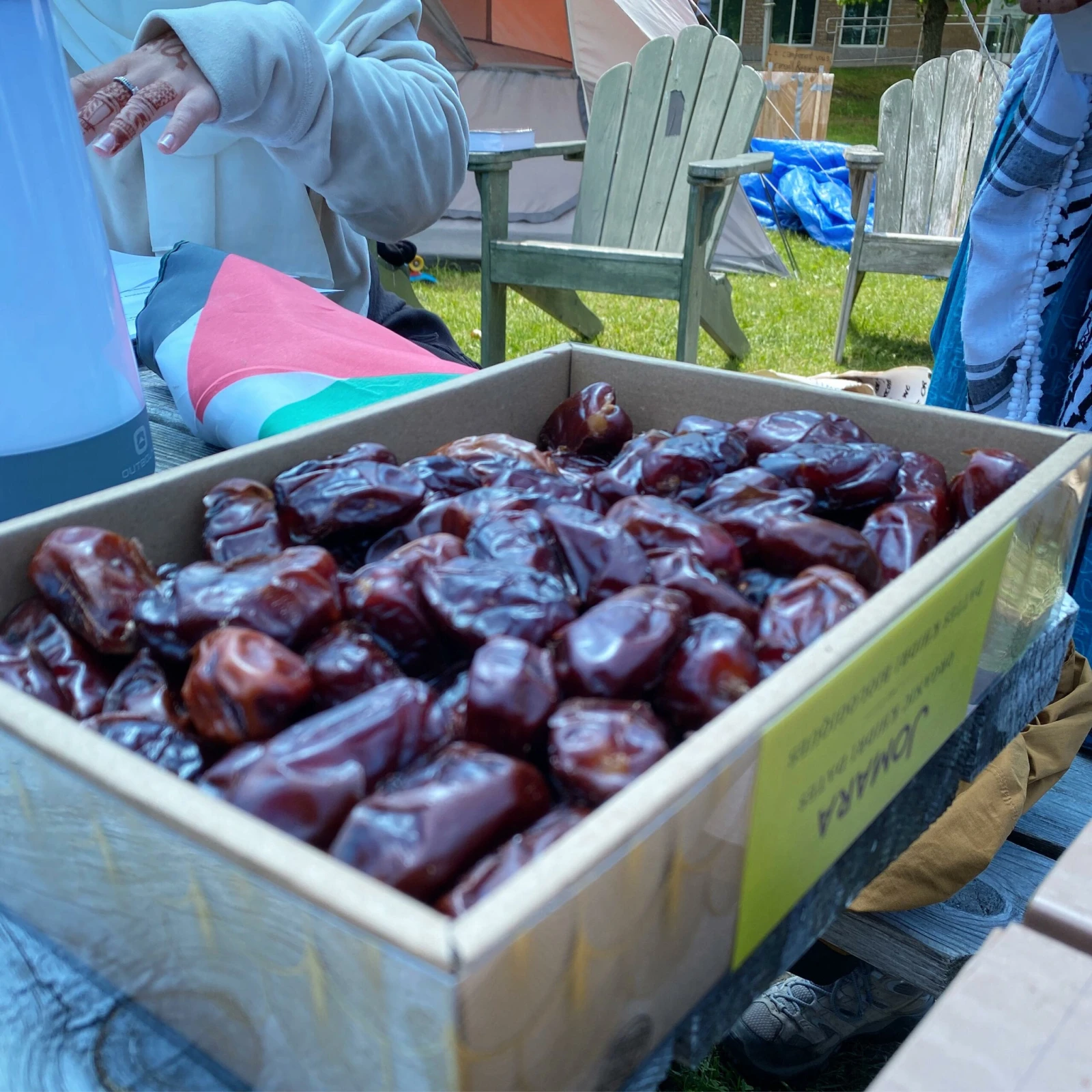 Il vente fort et un gros drapeau palestinien flotte en face du campement, devant lequel coule un petit ruisseau. Malgré la session d’été qui est commencée, c’est plutôt tranquille sur le campus.