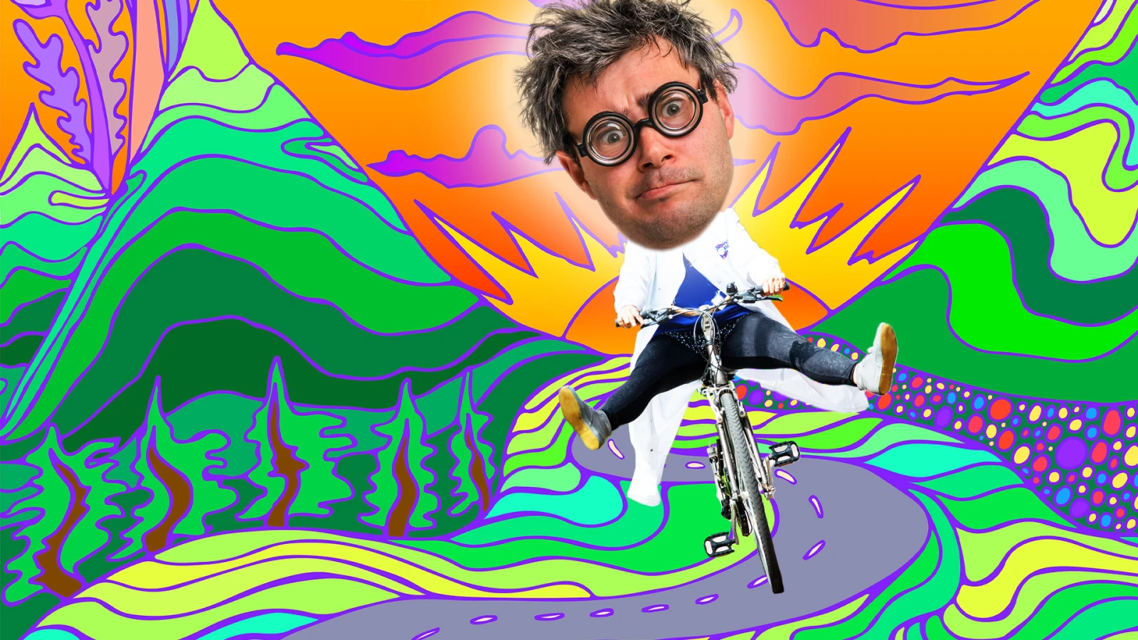 Comme on dit en bon québécois, c’est là qu’il s’est mis à badtripper solide. Pendant le trajet à vélo, il commence à ressentir une anxiété grandissante, et son champ de vision devient complètement distordu. Il a l’impression d’être figé dans le temps et l’espace, convaincu qu’il n’avance pas d’un poil. Parler à son assistante lui demande un effort surhumain; il est incapable de former des phrases complètes et cohérentes. C’est en référence à cette balade inhabituelle que le 19 avril est connu sous le nom de Bicycle Day par les amateurs de LSD partout dans le monde.