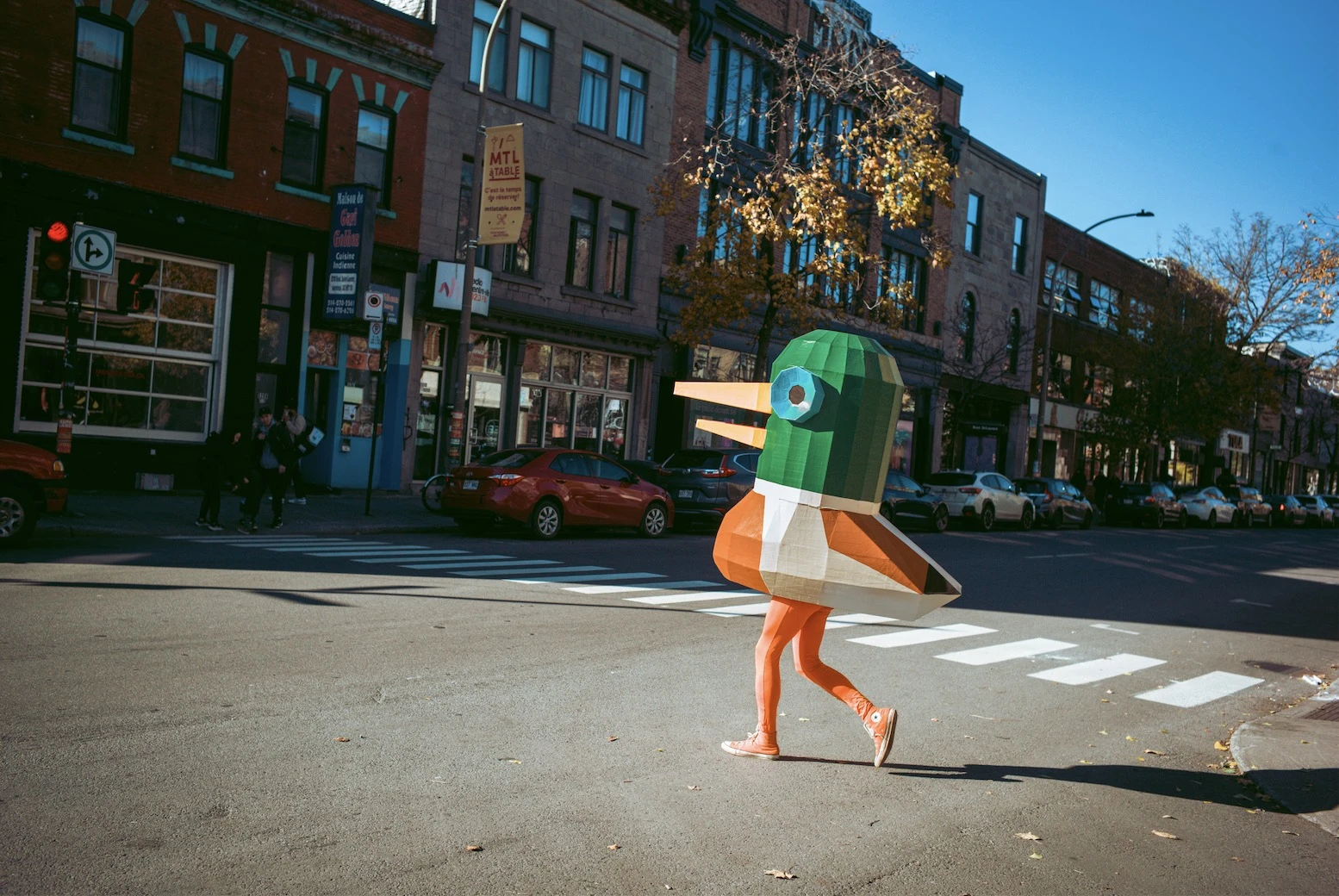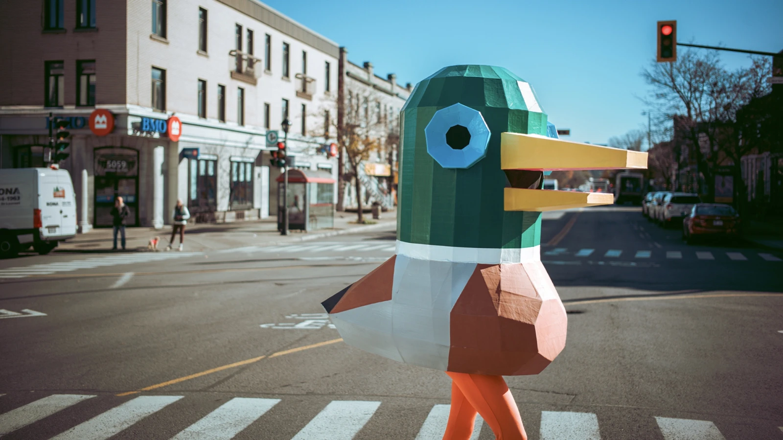 Peut-être l’avez-vous déjà aperçu dans les rues de Montréal. Pour ma part, c’était la semaine dernière, par un après-midi tout à fait banal sur l’avenue Mont-Royal : un canard colvert géant, avoisinant les sept pieds de haut, se promenait calmement au milieu des passants, laissant dans son sillage des visages incrédules et des WTF en tête.