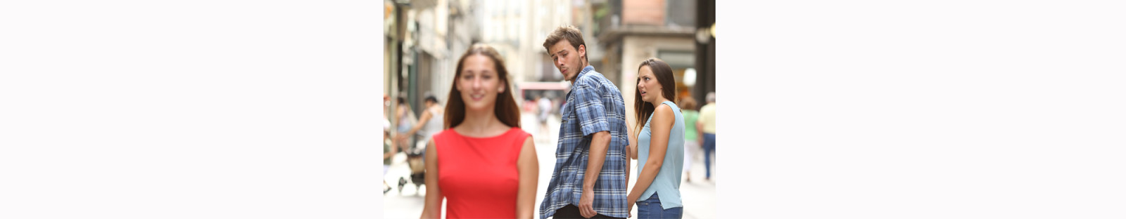 Tout le monde aime le mème internet du copain distrait par une belle fille qui passe dans la rue. Celui-là :