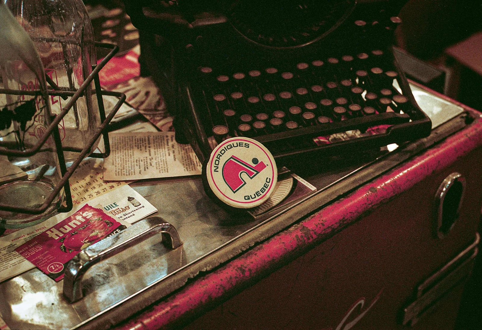 Le patron me dit que je peux partir avec un item. Gêné, je choisis une rondelle à l’effigie des Nordiques.