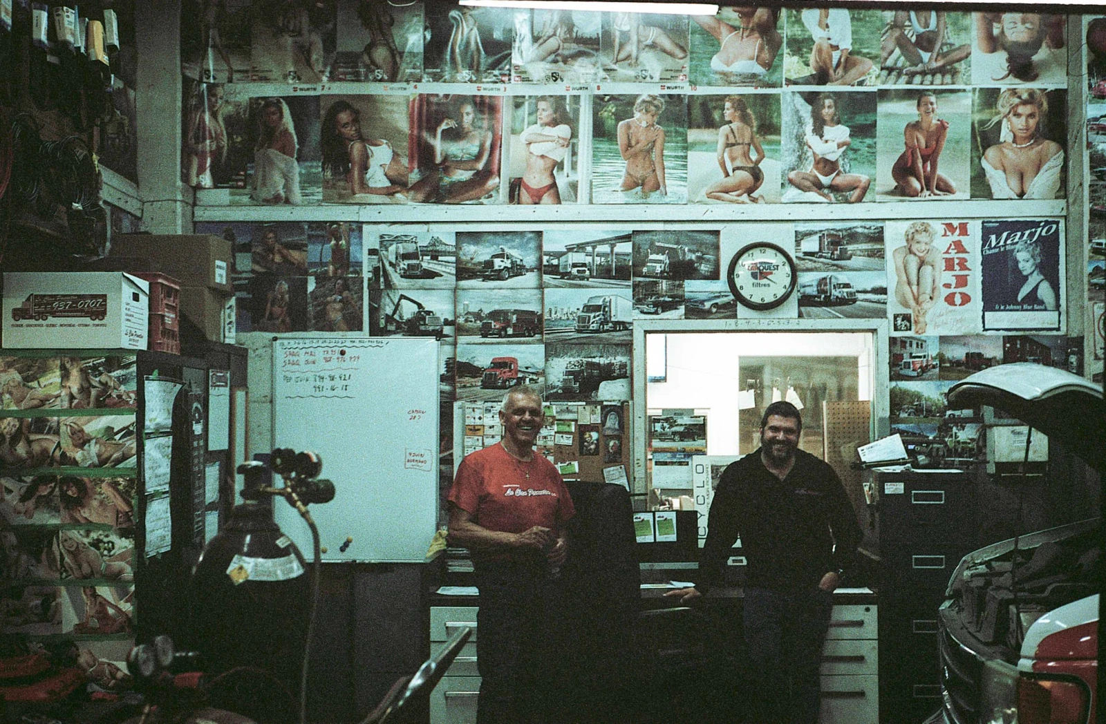 On visite Yvon, maître mécano et roi du garage. 70 ans et il travaille sans relâche six jours par semaine dès 6 heures du matin. Ce garage, c’est chez lui, décoré avec des pin ups de calendrier et des affiches de Marjo dédicacées à son honneur.