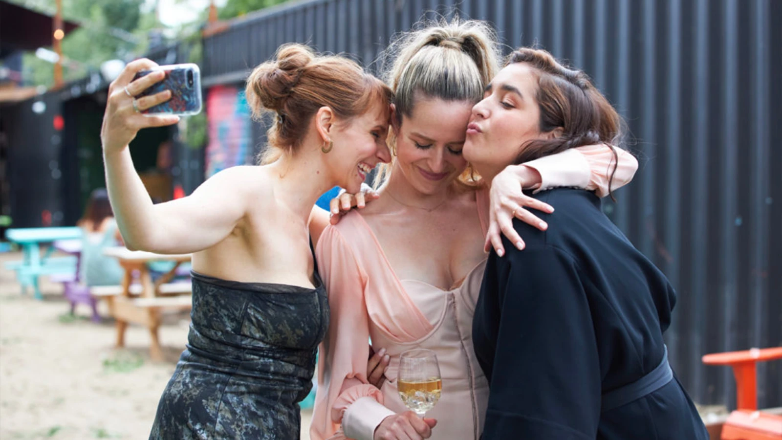 Coréalisée par Miryam Bouchard et cosignée par Émile Gaudreault, la comédie dramatique qui prendra l’affiche le 6 juillet nous convie aux retrouvailles de trois amies du secondaire, Sabina (Mariana Mazza), Valérie (Léane Labrèche-Dor) et Audrey (Catherine Chabot), accompagnées de leurs conjoint.e.s (Victoria Diamond, Mickaël Gouin et Maxime de Cotret). Alors que la soirée avance et que l’alcool délie les langues, de vieilles tensions émergent sur fond de questionnements sur le sort de l’humanité.