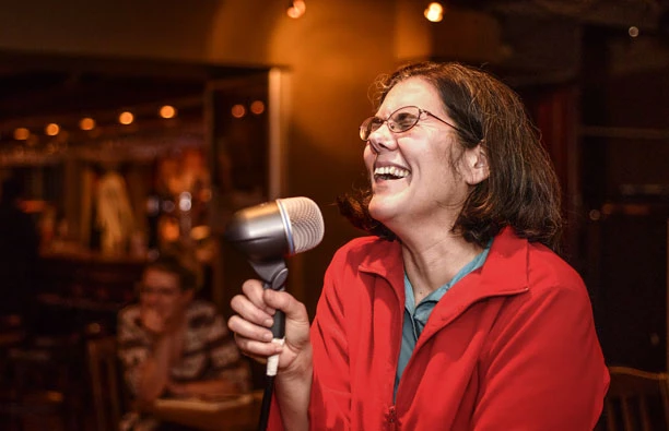 Un peu, parce que c’est tard. Moi, d’habitude, je suis couchée à 10h! Et c’est intimidant. Quand ma prof m’a donné une liste de contacts pour aller roder mes numéros dans les bars, je me disais que je ne ferais jamais ça. Mais il y a une part de moi qui est extravertie, alors je me suis lancée en me disant « au pire ils me lanceront des tomates! » En même temps, c’est l’fun d’être entourée de p’tits jeunes qui m’appellent madame, ça garde jeune. Ma fille de 22 ans est venue me voir avec ses amies. Elle était fière et elle m’encourage.
