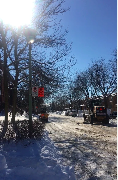 Justement, le camion-remorque actionne sa sirène puisqu’une voiture est stationnée par effraction sur une rue résidentielle. La pancarte orange affiche pourtant clairement que le stationnement est interdit de 7h à 19h. Il est 11h et la voiture concernée est le seul obstacle des déneigeuses qui s’amènent.