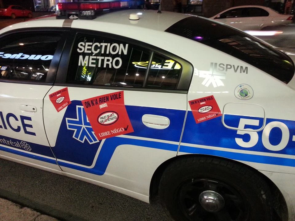 Pourtant, des centaines de policiers se retrouvent aujourd’hui avec des avis écrits et des suspensions salariales; on les touche directement au porte-feuille, là où ça fait le plus mal. Des centaines de familles sont privées de montants pouvant aller jusqu’aux dizaines de dollars. Et pourquoi? Pour avoir osé exprimer publiquement et solidairement leur mécontentement face à une loi Libérale inique.