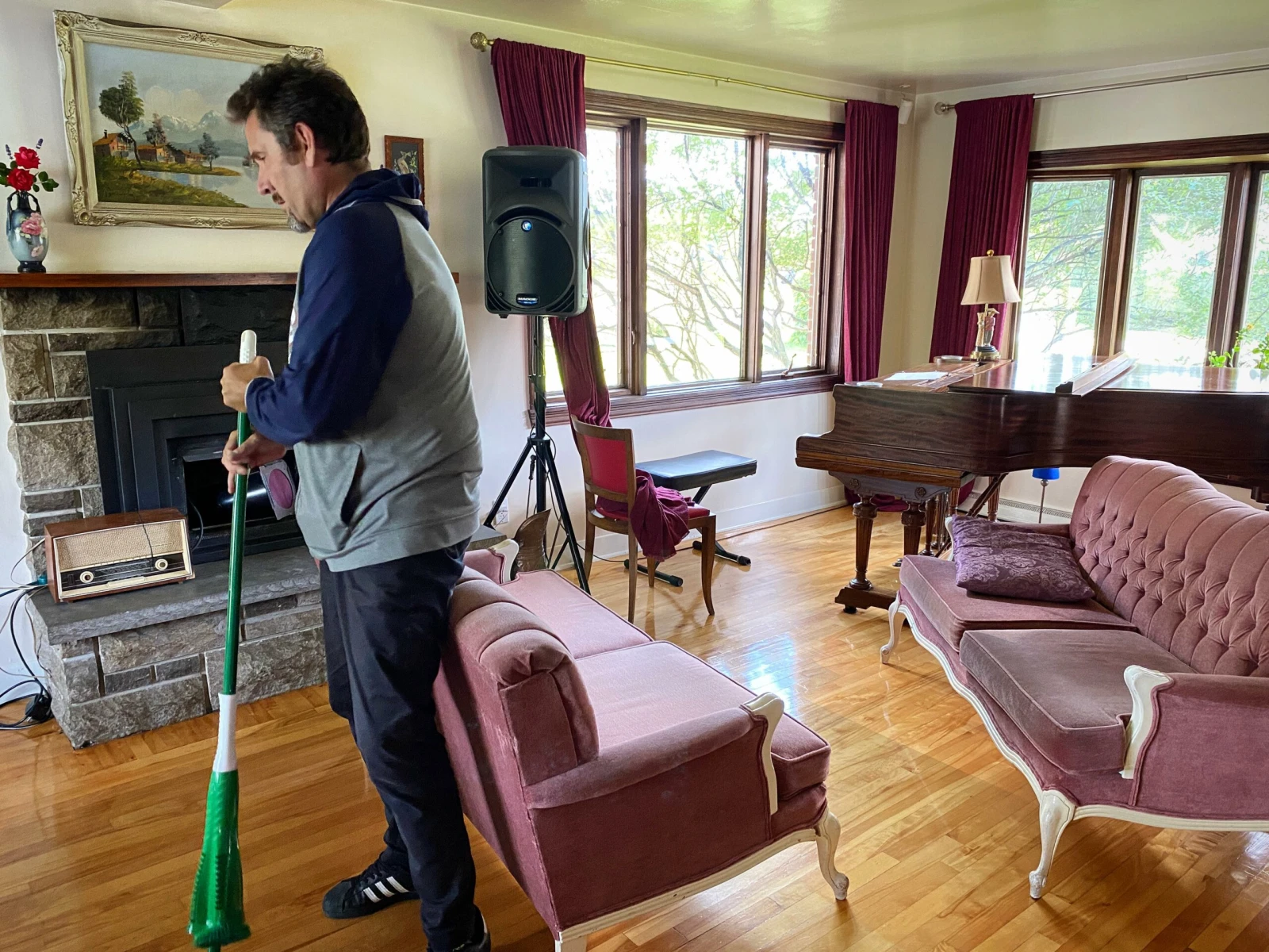 À l’intérieur de la maison, Manu passe la moppe sur le plancher en bois, l’odeur du produit nettoyant embaume la pièce. Le musicien me raconte l’histoire derrière le magnifique piano à queue qui trône dans le salon, un instrument centenaire trouvé chez un antiquaire pour une bouchée de pain. « Lucie, tu commences tes vocalises bientôt? », demande-t-il à sa belle, en train de préparer le punch avec le basilic qu’elle vient de couper dans son jardin.