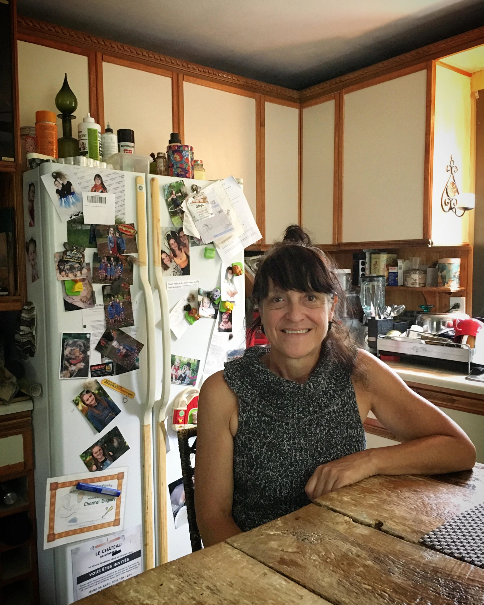 Chantal s’excuse plusieurs fois du désordre. On s’installe dans la cuisine, derrière une belle table en bois. « C’est moi qui l’a fabriquée », précise-t-elle. Elle confectionne des sacs à main aussi, à son compte. Le reste du temps, elle lave des vitrines pour des particuliers et des commerçants.