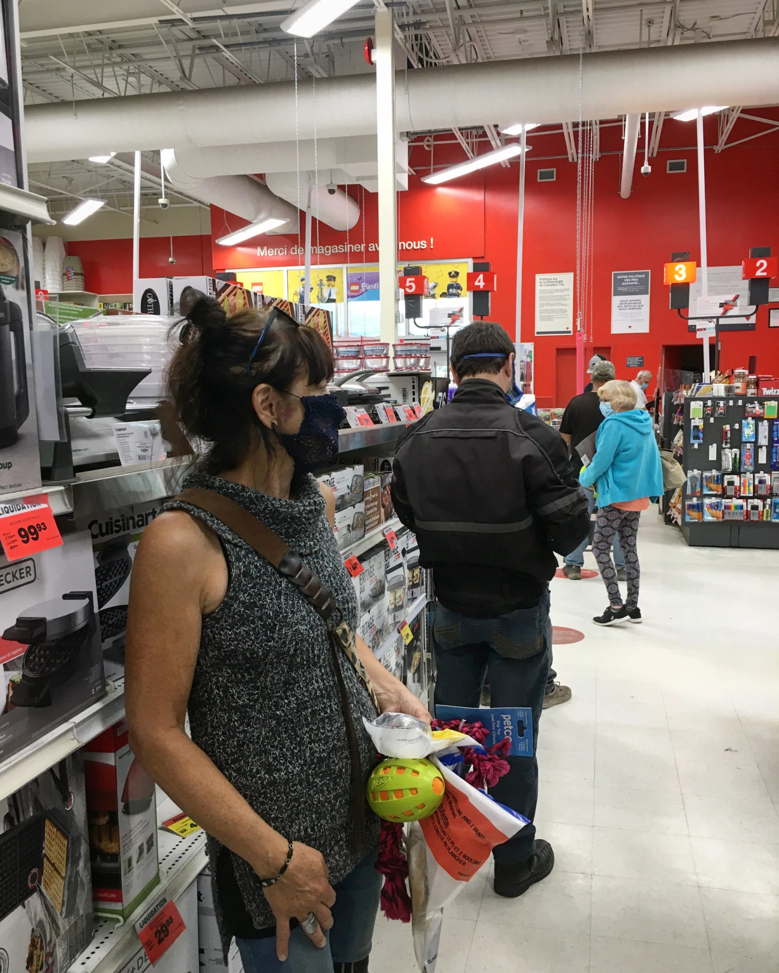 Elle esquive quand même le Purell à l’entrée, pour aller acheter des jouets pour Lady et un truc pour la toilette.