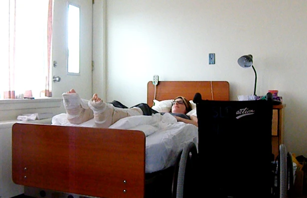 Il est difficile de réaliser à ce moment-là qu’on passera les quatre prochains mois en fauteuil roulant, telle une paraplégique. Qu’on vivra à l’hôpital, avec une atrophie musculaire complète du nombril aux orteils et des plâtres aux deux pieds. Que nos bras deviendront notre seule façon de nous mouvoir et qu’un fauteuil roulant deviendra notre seul et unique symbole de liberté, une extension de notre corps, une partie de nous-mêmes. Que nos colocataires auront tous plus de 75 ans, mais surtout, que notre vision de la liberté sera à jamais changée : pour une accro du sport repoussant les limites, une simple marche devient infranchissable.