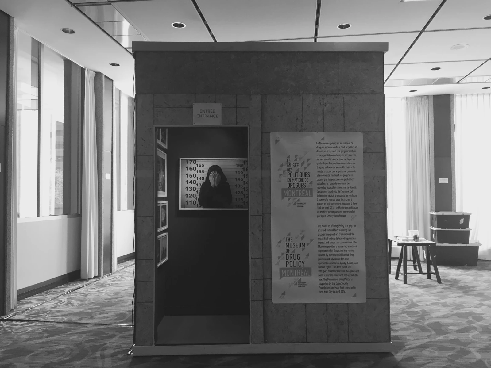 Situé au troisième étage d’un immeuble au centre-ville de Montréal, du 15 au 17 mai, on peut visiter le cube gratuitement et le tout ne prend pas plus que 10 minutes, assuré. On en aurait pris un peu plus, honnêtement. Parce que l’idée est bonne: sensibiliser le public aux politiques mondiales reliées aux drogues, par l’art visuel. Toucher le public avec l’art au lieu des chiffres. Les histoires avant les statistiques. Il y a de quoi en faire une exposition à grand déploiement. Ça aurait mérité mieux qu’un conteneur placé dans le coin d’une salle. Les histoires ne manquent pas, mais l’espace, oui.