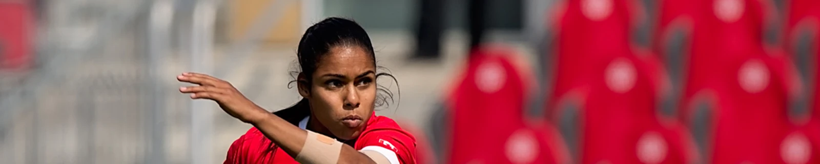 En moins de temps qu’il n’en faut pour crier “Crouch! Touch! Set!”, la jeune rugbywoman et son entourage se rendent compte qu’elle est rapide. Plus rapide que tous les autres, y compris les gars. Elle est alors recrutée par la St. Francis Xavier University en Nouvelle-Écosse et remporte les championnats nationaux dans la foulée. C’est là que tout s’accélère. Elle connaît sa première sélection pour l’équipe nationale de rugby à VII en 2010 à Las Vegas. La même année, elle est aussi retenue pour sa première Coupe du monde, en Angleterre. “À partir de là, j’ai commencé à prendre les choses un peu au sérieux.”