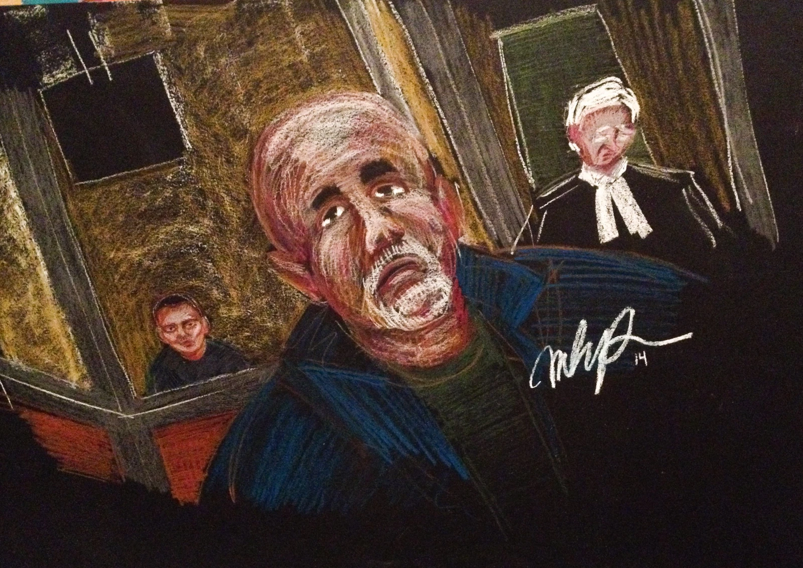 Les yeux encore collés par les crottes, armé d’un café trop chaud du McDo et d’un calepin Moleskine flambant neuf, je suis arrivé au Palais de justice de Montréal autour de sept heures. Déjà, les médias faisaient le pied de grue à l’extérieur comme à l’intérieur du 1 rue Notre-Dame Est. Et ce, depuis les aurores.