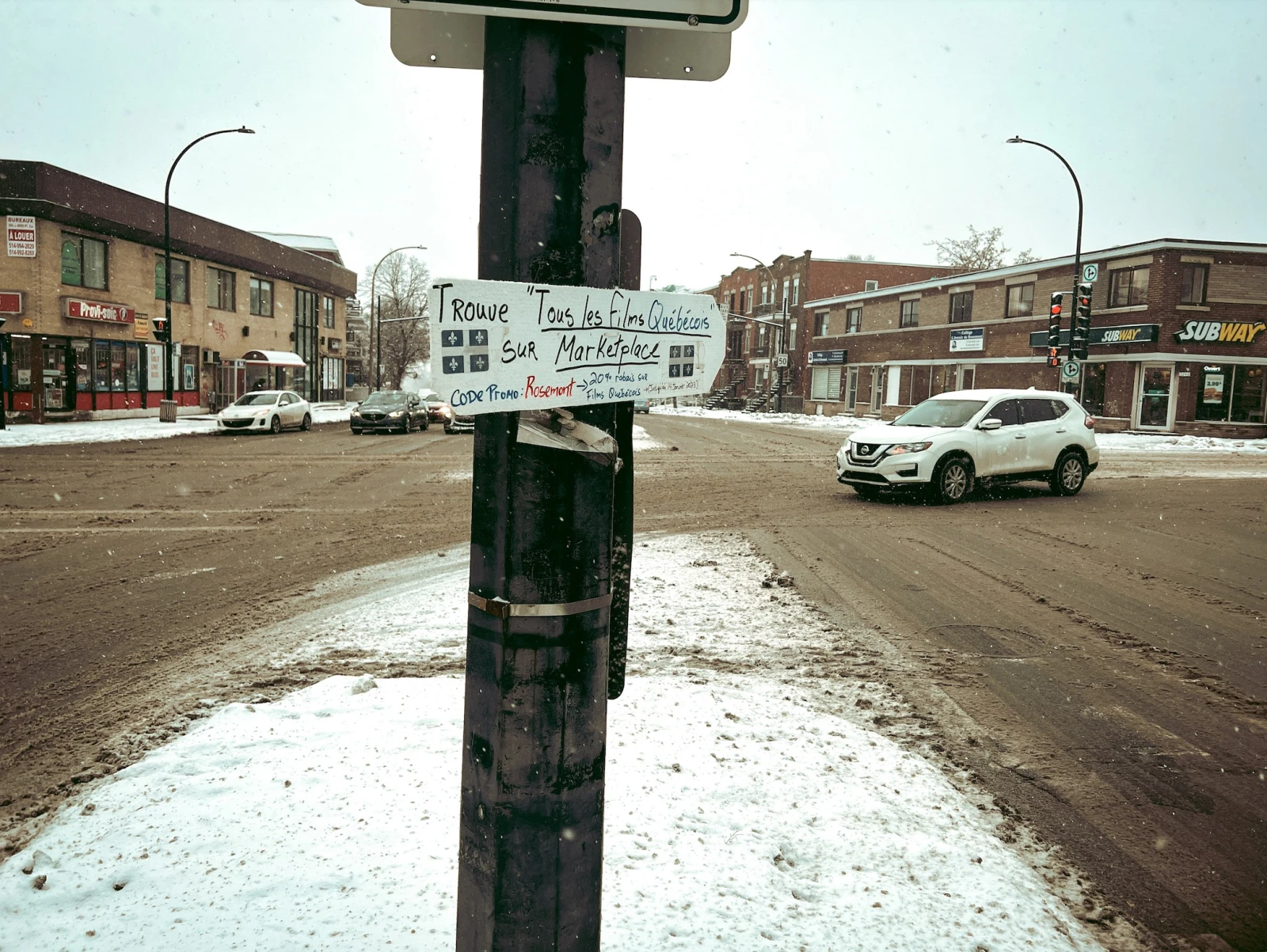 Quartier latin, Petite Italie, boulevard Saint-Michel, métro Henri-Bourassa comme Pie-IX; récemment, partout où je vais à Montréal, je croise de mystérieuses pancartes faisant la promotion d’une boutique Marketplace « Le Pro des DVD ». Affichage sauvage s’il en est, l’aspect rudimentaire de sa fabrication frappe autant l’imaginaire que son abondance. À chaque nouvelle rencontre, mon intérêt pour le Banksy du DVD s’amplifie. Mais qui se cache derrière cette étrange offensive publicitaire DIY?