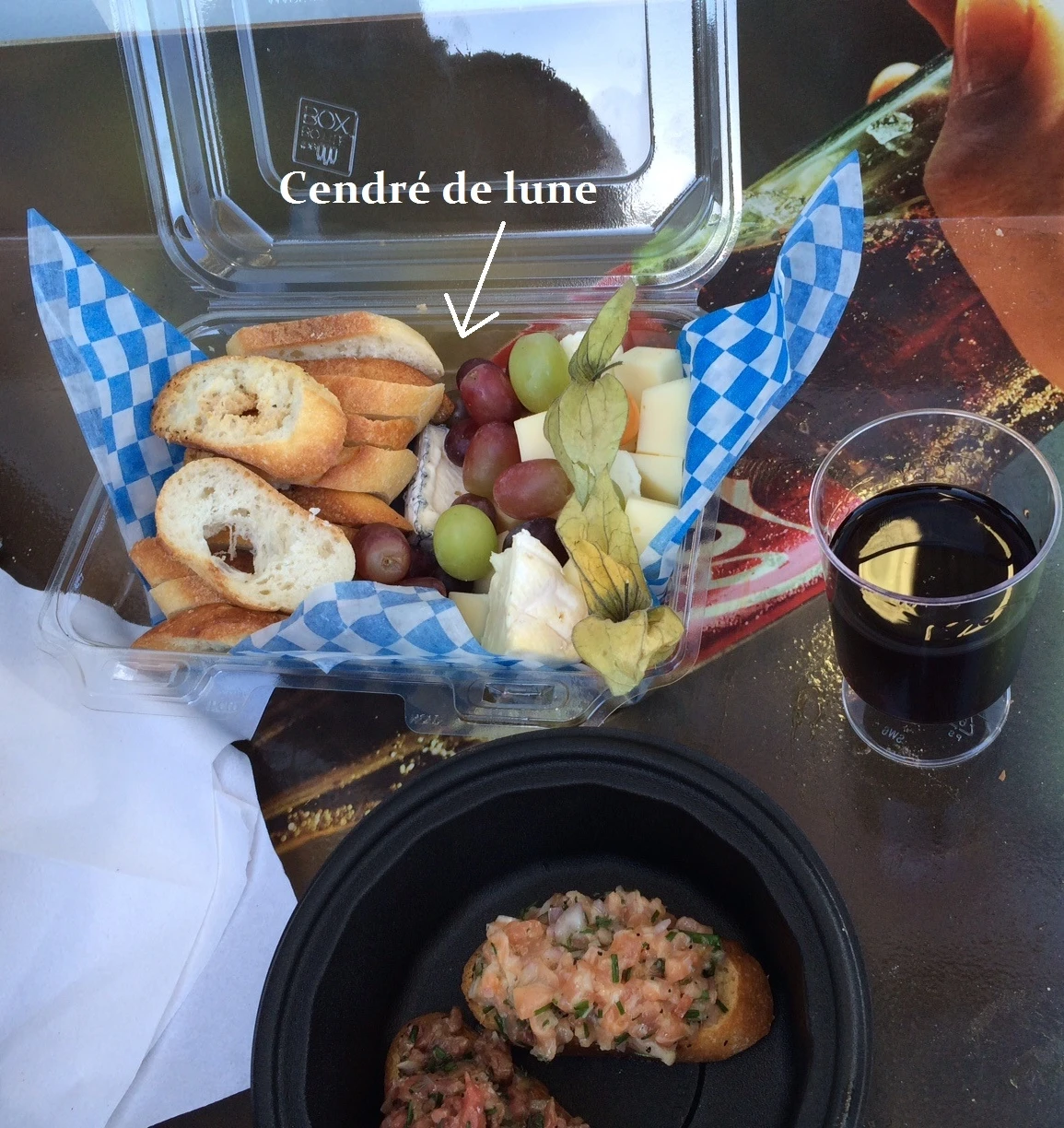Et, le crescendo de mon ascension gastronomique : le stand d’Umberto Cesari qui apparaît tel un phare dans la nuit. DU TARTARE! DU VIN! DU FROMAGE! Là où Marie-Claude Lortie pourra s’exclamer, entre deux bouchées: “Oh mon doux, y’a du Cendré de Lune!”