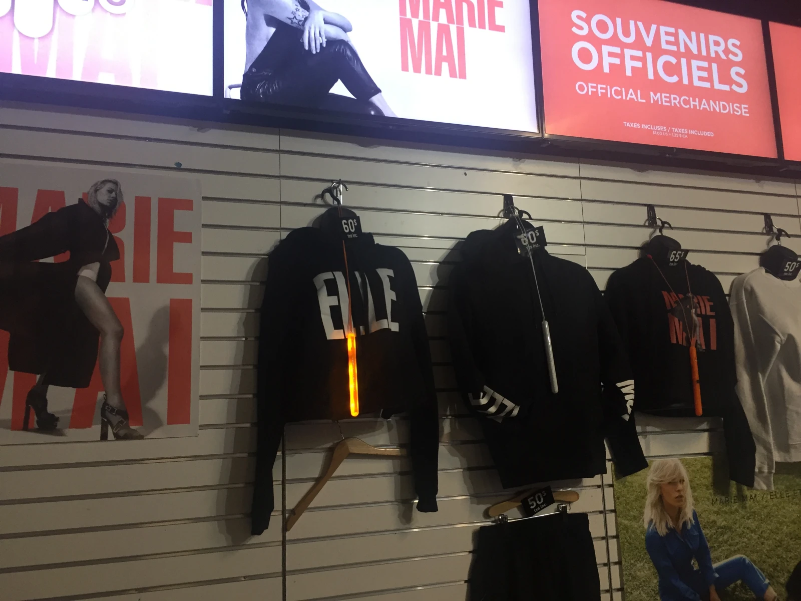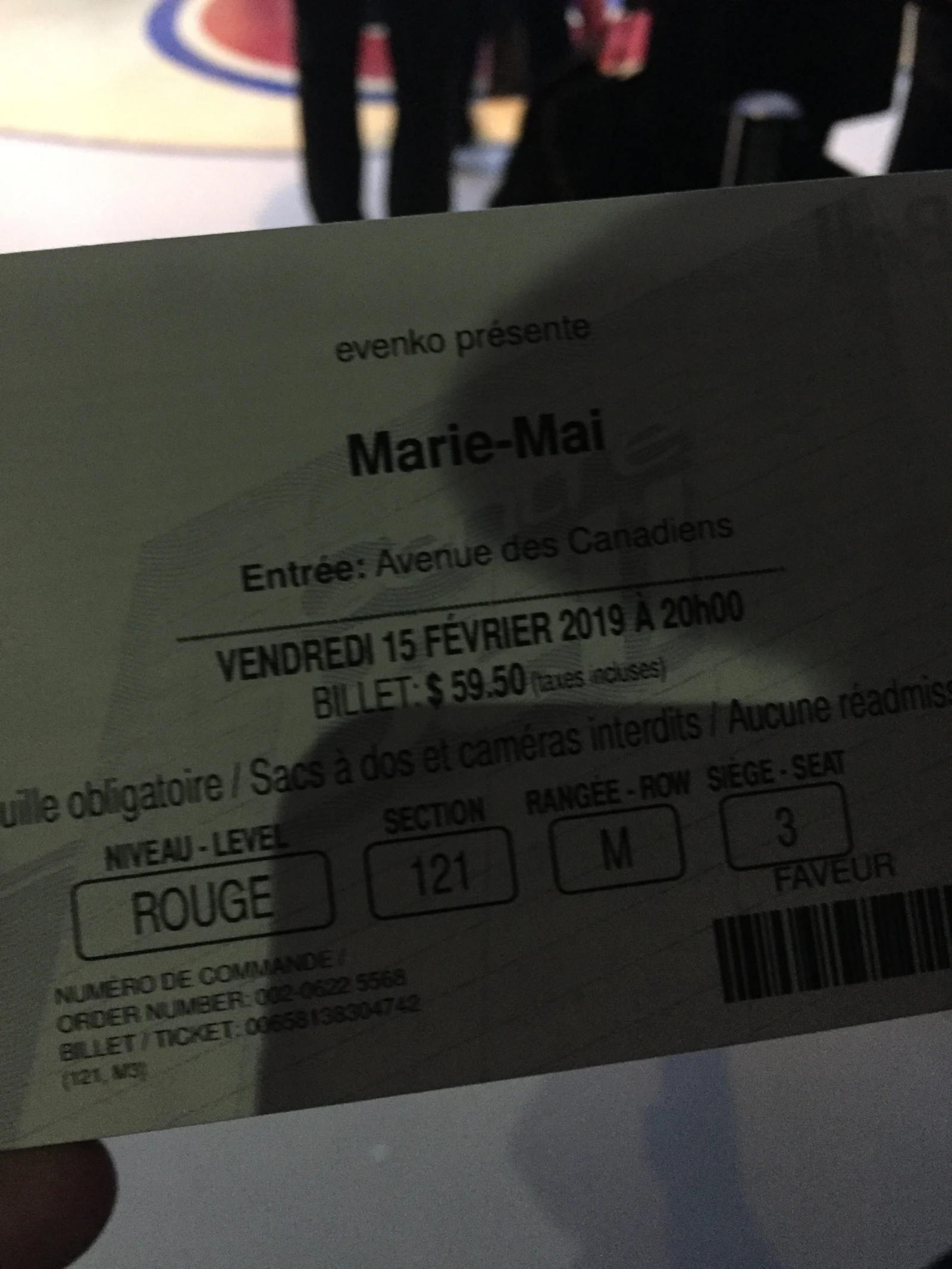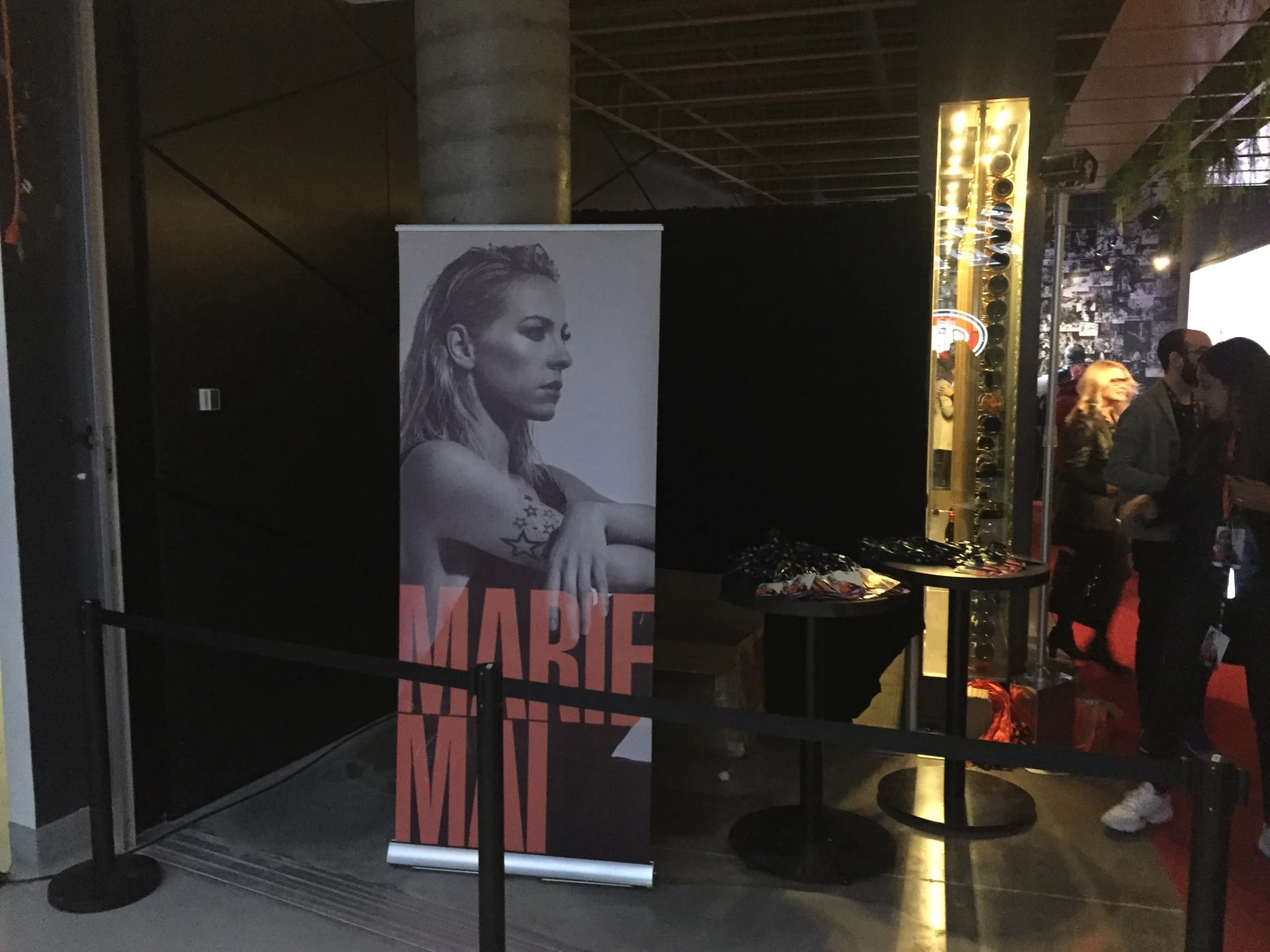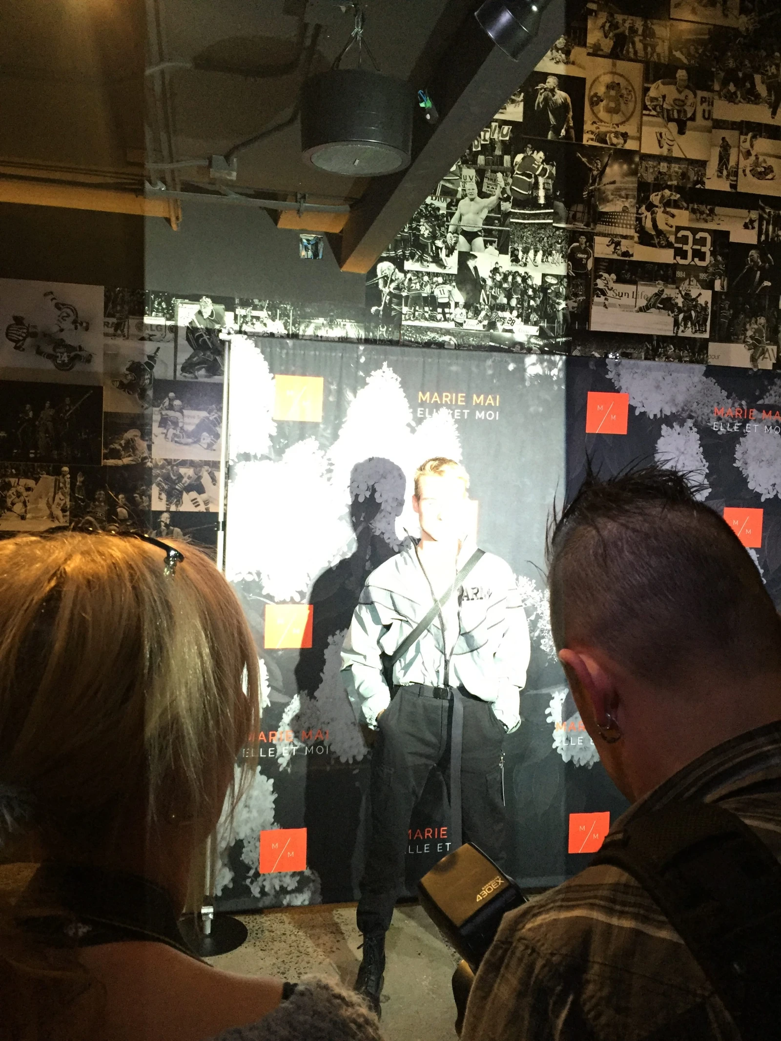 En sortant du métro Bonaventure, nous suivons notre instinct vers l’entrée V.I.P., auquel nous avons été conviés avec générosité par l’équipe des relations de presse de notre popstar québécoise préférée après Gabrielle Destroismaisons. Aux abords de la cour Rio Tinto, cette bannière indicative semble avoir été victime de la Marie-Mai mania.