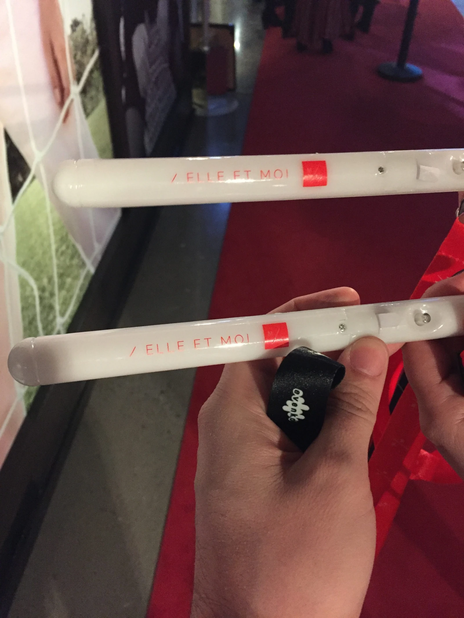 Gracieusement donnés à l’entrée de la zone des élus de la société, ces bâtons de lumière promotionnels nous font chaud au coeur.