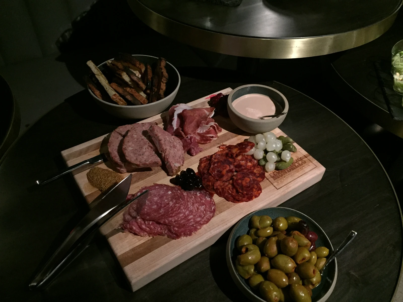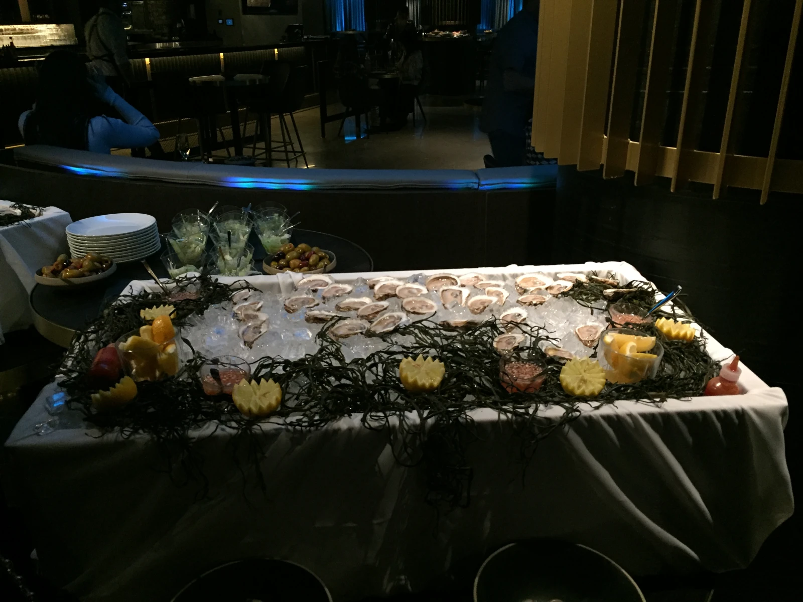 Pour oublier notre triste sort, vaut mieux profiter de ce buffet encore intouché avant que Jean-Sébastien Girard arrive.