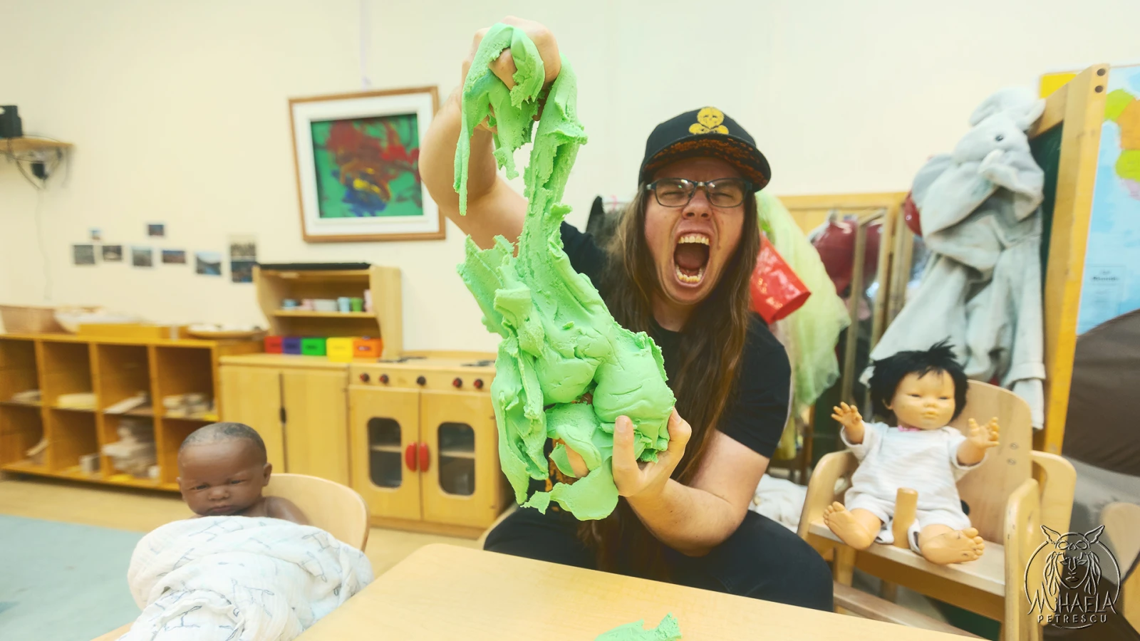Comment est-ce qu’un jeune métalleux au tempérament artistique devient éducateur à la petite enfance? « C’est une histoire un peu abracadabrante, raconte-t-il. Je parlais du futur avec une fille dans un party. Je lui confiais que j’étais pas sûr de savoir quoi faire de ma vie. Le discours classique de jeune adulte. Elle m’a dit que je devrais travailler avec les enfants, que ma passion pour ma job de moniteur de camp de vacances était palpable. Elle avait raison. Je suis donc parti faire ma technique [au Collège] Vanier. »