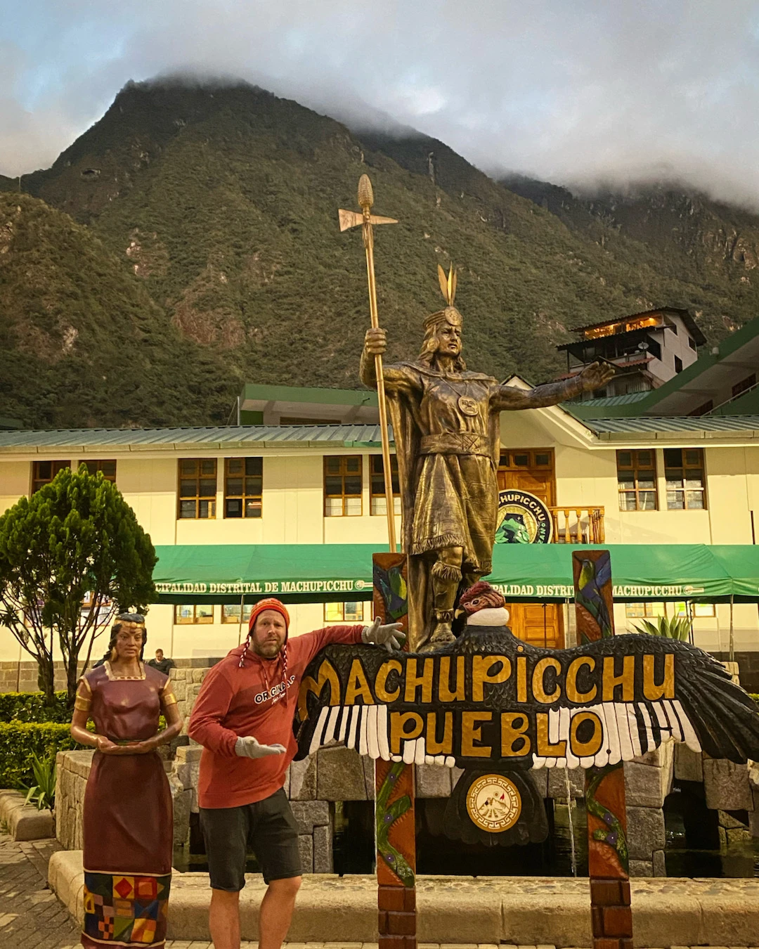 Aguas Calientes est une sorte de village patenté à la Mont-Tremblant, mais avec des touristes costumés en Inca au lieu de douchebags américains. On y passe la nuit avant l’ascension du Machu Picchu (qui signifie « vieux pic » en passant).