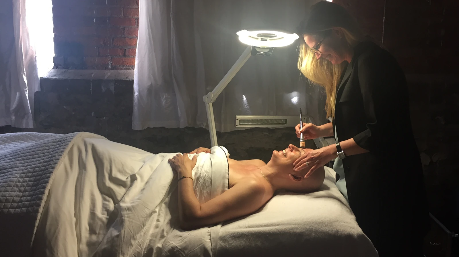 Elle soigne ma peau d’oncologie comme une maman soigne les fesses rougies de son bébé. Elle l’étudie, la lave et la masse avec ses huiles, ses crèmes et sa science. Elle traite mes cicatrices comme si elles étaient des perles qu’elle veut transformer en minces fils d’or grâce à une lumière qu’elle a mis au point et qu’elle nomme Max. Elle traite d’immenses personnalités internationales, mais elle fait une place de choix aux femmes atteintes du cancer sous toutes ses formes. Elle a fait de l’onco-esthétique sa spécialité. Elle donne des formations à travers le monde pour enseigner cet art à d’autres femmes : aider à redonner un peu de beauté et de santé à cette peau si malmenée par la chimio. Ça me jette à terre. La première fois que je l’ai rencontrée, j’ai pleuré. Je sais, je pleure souvent, mais les bons sentiments m’ont toujours fait cet effet-là. Avec ou sans cancer. La générosité et la bienveillance me chavire et me font croire en l’humanité. Et pour une rare fois, j’accepte la gratuité avec humilité. Parce qu’elle vient du cœur d’une femme plus grande que nature. Merci Jennifer. Je trouverai bien une façon de redonner. Promesse de phénix.