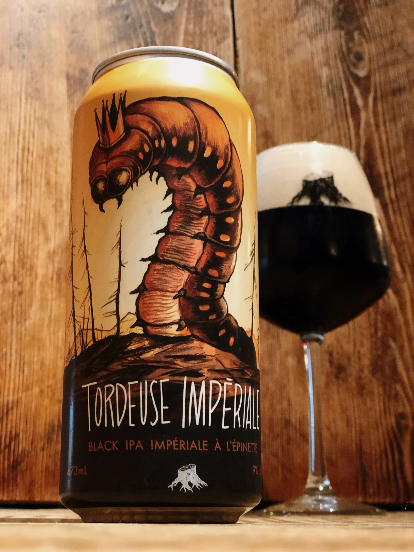 D’un brun presque noir aux reflets roux surmonté d’un col beige tenace, la Tordeuse Impériale présente des arômes de houblon résineux, d’épinette et un soupçon tropical, en plus du malt torréfié qui se fait sentir en tempérant. En bouche, la gomme d’épinette côtoie des effluves d’orange. On devine aussi des notes de chocolat noir, puis un malt torréfié plutôt discret. Une bonne amertume se pointe en finale, toujours accompagnée d’épinette et de notes sucrées. Une bière définitivement unique, plus près d’une IPA que d’une noire et où l’on ne sent pas les 9% d’alcool.