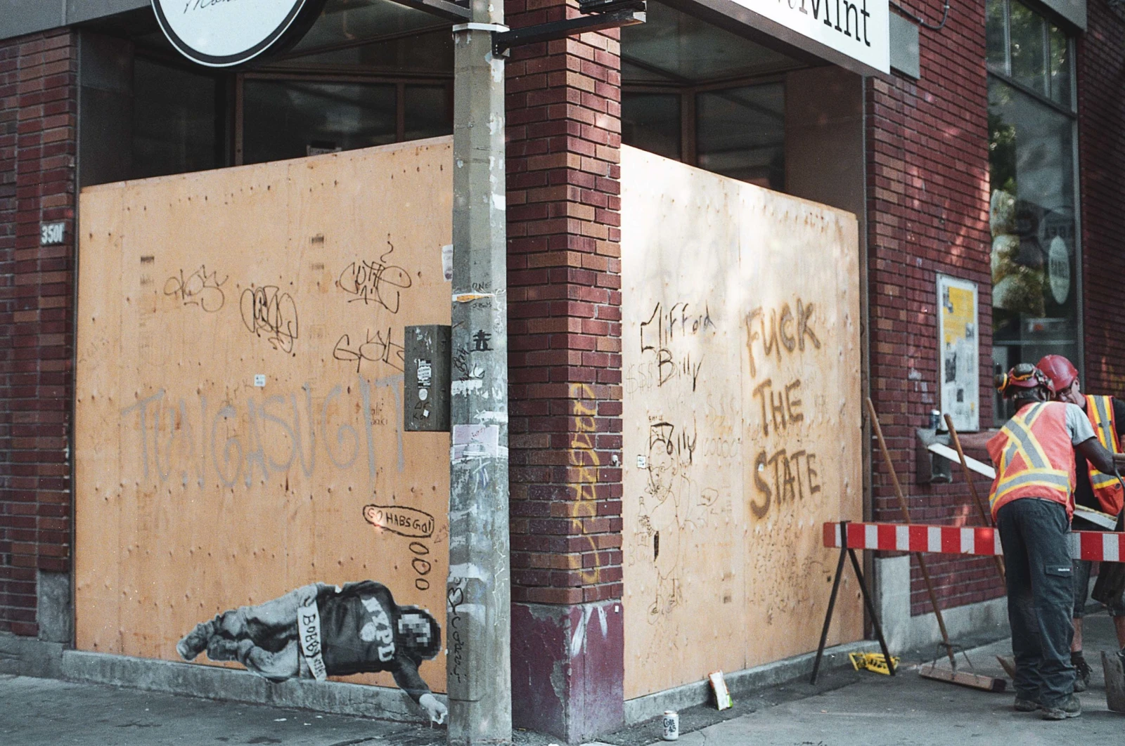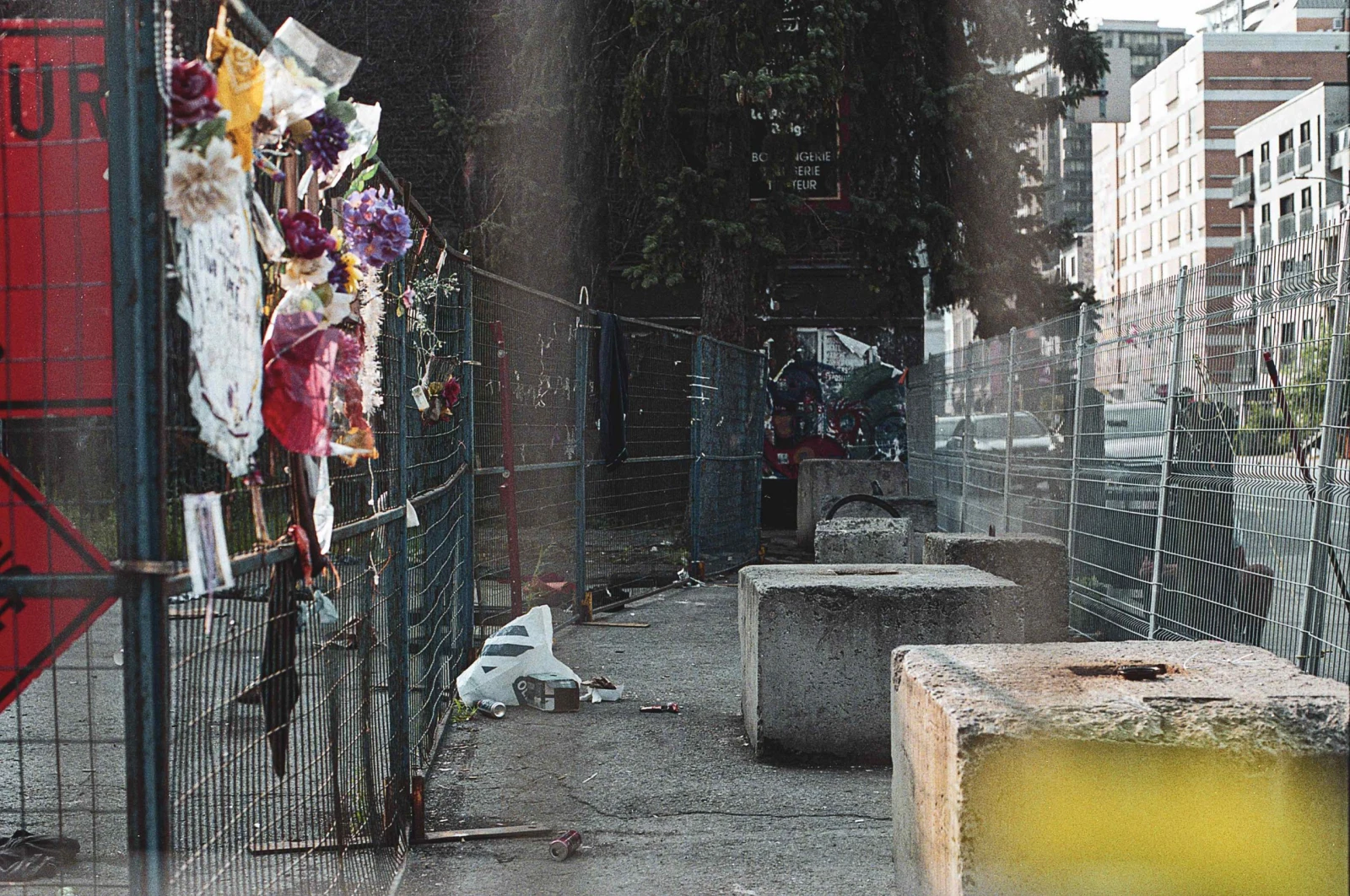 Les affiches installées hier soir pour exprimer leur révolte, qui arboraient des slogans tels: Indigenous Lives Matter, Forever Inuit street et Take the fence off ont été mystérieusement retirées en matinée. Un dessin est accroché lors de ma visite pour embellir le mur de métal. J’interroge Annissee. Que demanderait-elle à la mairesse si elle en avait l’opportunité? « Plus de lieux pour dormir, plus de sécurité, mais surtout être considérés comme des citoyens au même titre que tout le monde. Nous sommes traités différemment à cause de nos traits. Dans la rue par la police, mais aussi par les ambulanciers, les médecins. Pas tous, mais plusieurs. On se fait mettre dehors des hôpitaux, les forces de l’ordre vident nos bières », me répond la femme, en partageant sa cigarette avec Mala.