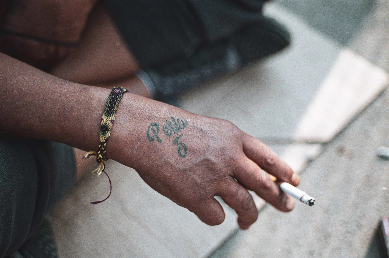 Angle Milton et Parc, au cœur du coquet ghetto McGill. Devant le stationnement de l’ancien bistro chic Chez Gauthier, abandonné depuis presque dix ans, une partie de l’itinérance inuite a fait de ce petit territoire ses quartiers. Parfois, d’autres personnes en situation d’itinérance, toutes origines confondues, se joignent au groupe. Ce matin, certains dorment au sol, d’autres picolent en bavardant en inuktitut. Deux policières ont maille à partir avec un homme. Certains sont méfiants, d’autres plus accueillants. Je ne veux pas brusquer ni imposer ma présence. On se salue, présente nos tatouages respectifs, forme universelle d’introduction entre inconnus. Je peux m’asseoir.