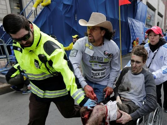 Comme si les chaînes en continu n’alimentaient pas déjà assez notre boulimie d’information après les grands événements qui secouent la planète, Twitter en rajoute en ouvrant la porte à la logorrhée de tout un chacun. Presque la même date que les attentats d’Oklahoma City! Un Saoudien a été arrêté! Mon ami a terminé en 2 :54. Pendant ce temps, 50 morts dans des attentats en Irak… Une photo brouillée et pas brouillée d’un gars qui a perdu sa jambe. Un héros.