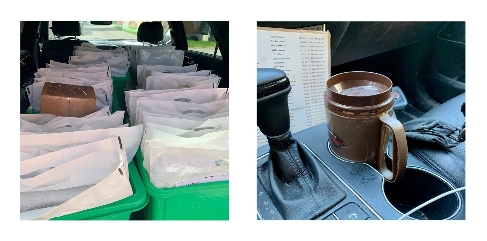 Le petit VUS coréen du patron est devenu mon bureau, mon chez-moi. J’ai écouté cent fois la discographie entière de Crisis et Minor Threat (un CD chaque), descendu des gallons de café noir, sacré entre deux klaxons, poliment laissé passer des piétons, coupé des Civic, enfilé des centaines de parallèles serrés, livrés des milliers de vinyles sans aucun accident (sauf presque une fois à Verdun), écouté JT dropper des milliards d’urgence en mangeant aux rouges des pointes fromage. Conduire au temps du coronavirus, c’est aussi faire ses stops Idaho tout en faisant gaffe à la marmaille hassidique et aux cyclistes du boulevard Gouin, sans oublier de rigoler du swag synthétique des joggeurs, cette débordante nouvelle racaille.