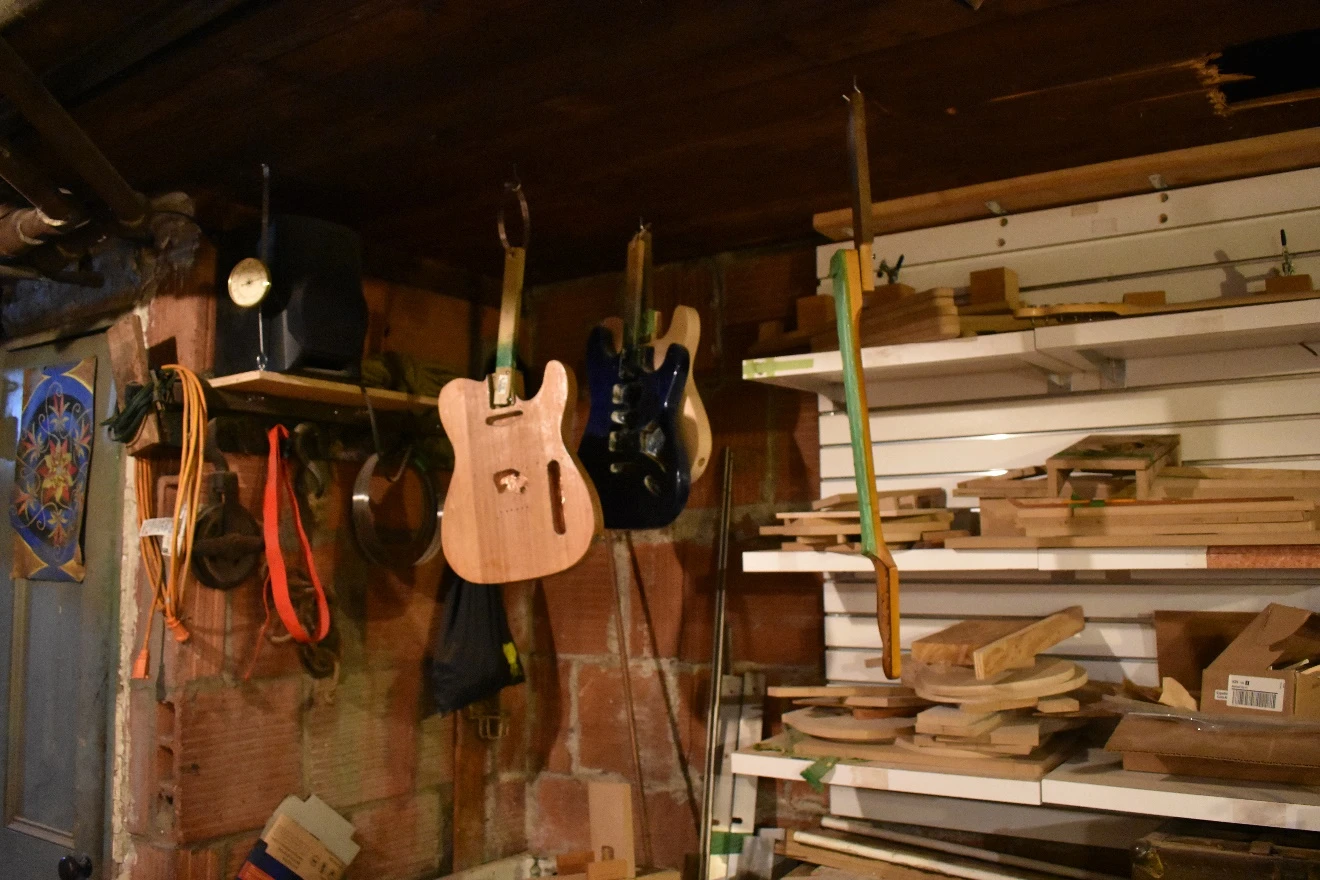 « On dirait que j’ai cette force mentale d’avoir une véritable volonté. J’ai réussi à embarquer mon ami Pierre-Émile dans mon trip. J’avais pas de local, donc je l’ai convaincu. Lui il avait déjà des outils parce qu’il faisait déjà un peu d’ébénisterie avec son père à l’époque, mais moi j’ai acheté plein de trucs de lutherie. On a réussi à combiner nos budgets pour avoir les outils nécessaires pour partir. »