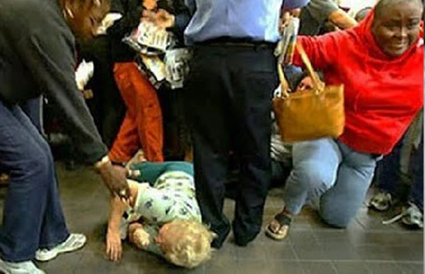 Dont cet employé du Walmart qui, en 2008, a perdu respire et vie en ouvrant les portes du magasin pour que le bon peuple qui kerissait des coups de poing dans la vitrine puisse retrouver le goût de vivre en renflouant son stock de Pot of gold pour pas cher. Piétiné pour la postérité.