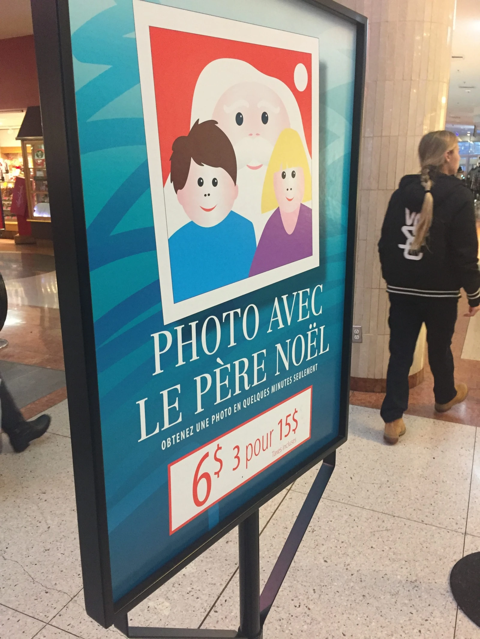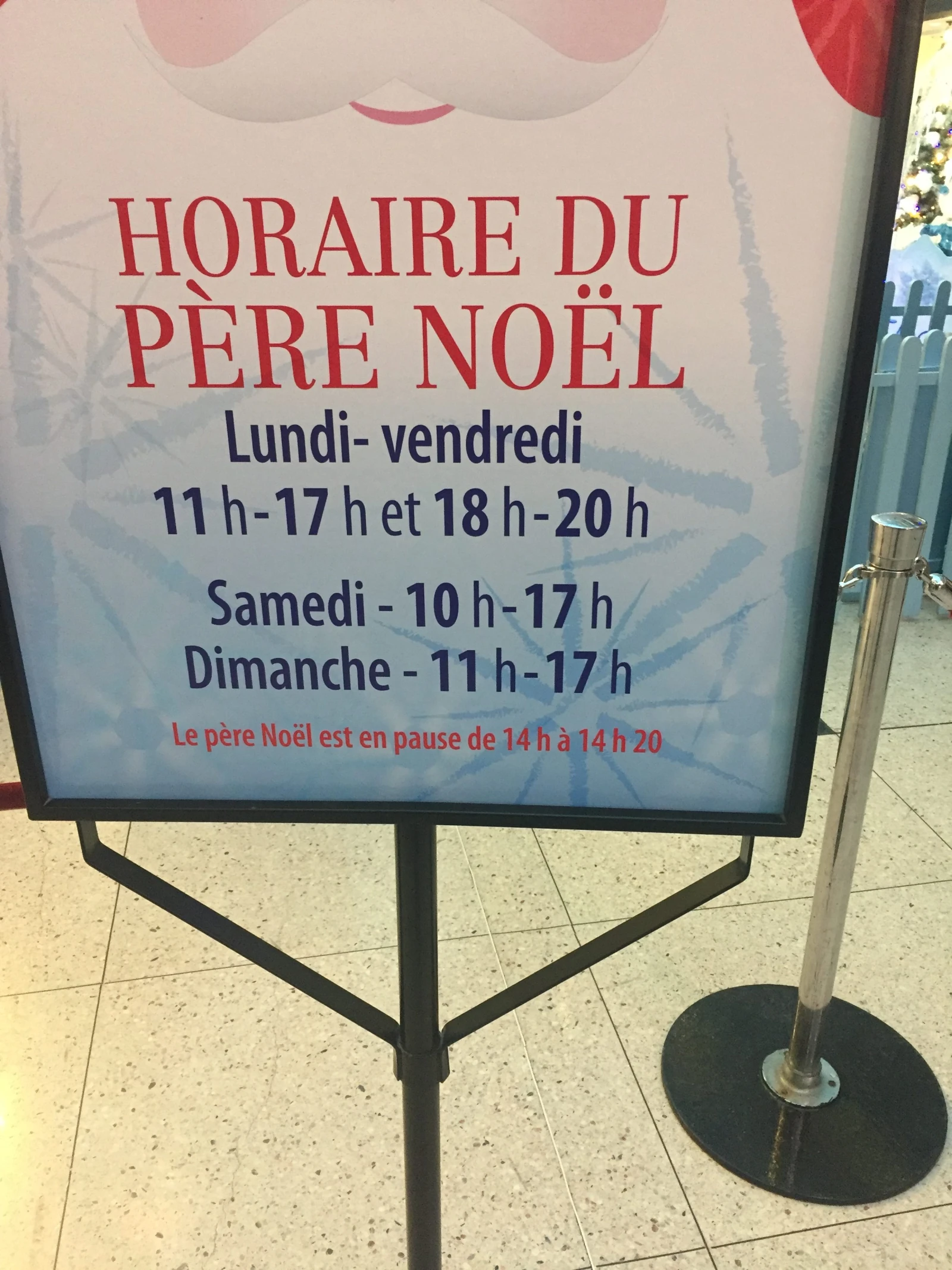 Pas facile, la vie de père Noël. En ce dimanche, notre beau bonhomme a un shift de six heures à faire, et il a seulement 20 minutes de lousse pour aller manger un bon biscuit, boire un grand verre de lait et, le cas échéant, faire ses besoins. À quand un syndicat des pères Noël pour critiquer ce surmenage?