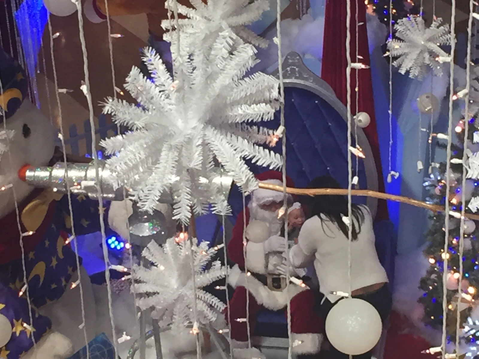 Devant la file qui rétrécit, elle finit par m’annoncer que…. finalement… il est possible… d’aller parler au père Noël et de prendre un selfie avec lui… GRATUITEMENT.