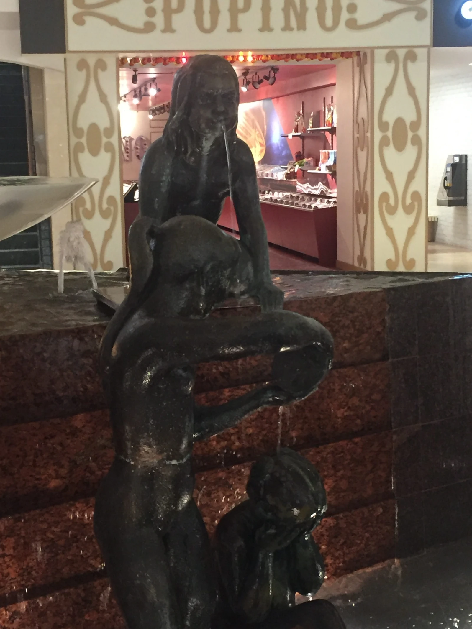 Cette statue d’un homme qui crache de l’eau sur la tête d’un enfant.