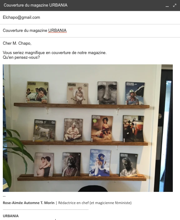 Pour tout vous dire, on attendait une réponse imminente de la part du baron de la drogue. Pour s’assurer de ne pas le manquer, on écrivait régulièrement à plusieurs adresses :