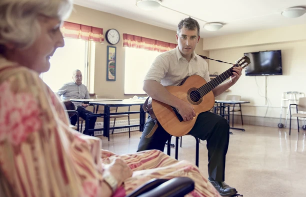 Armé de sa guitare, il fait vibrer la fibre nostalgique des personnes âgées en leur chantant « Donnez-moi des roses » et « All Shook Up ».