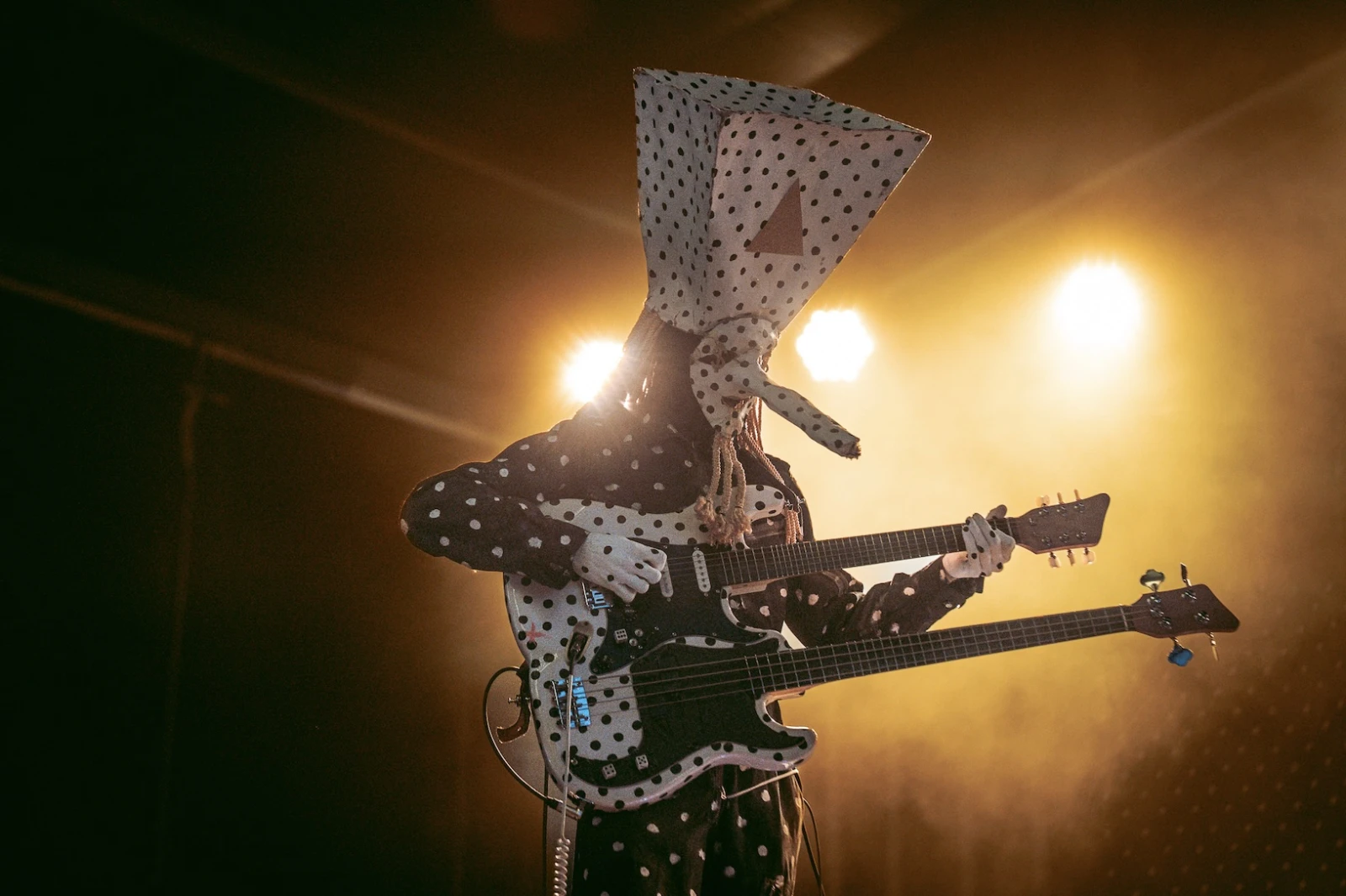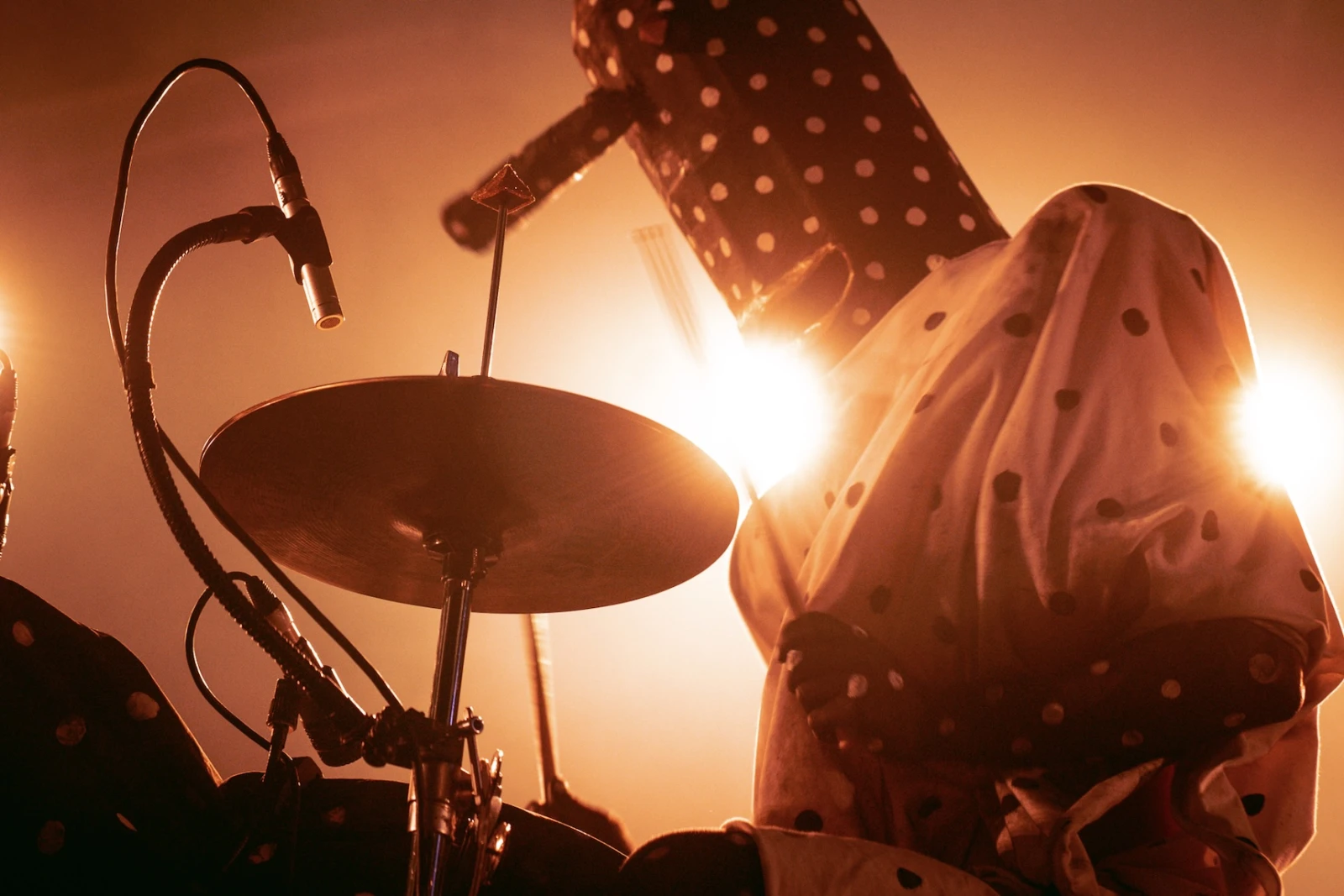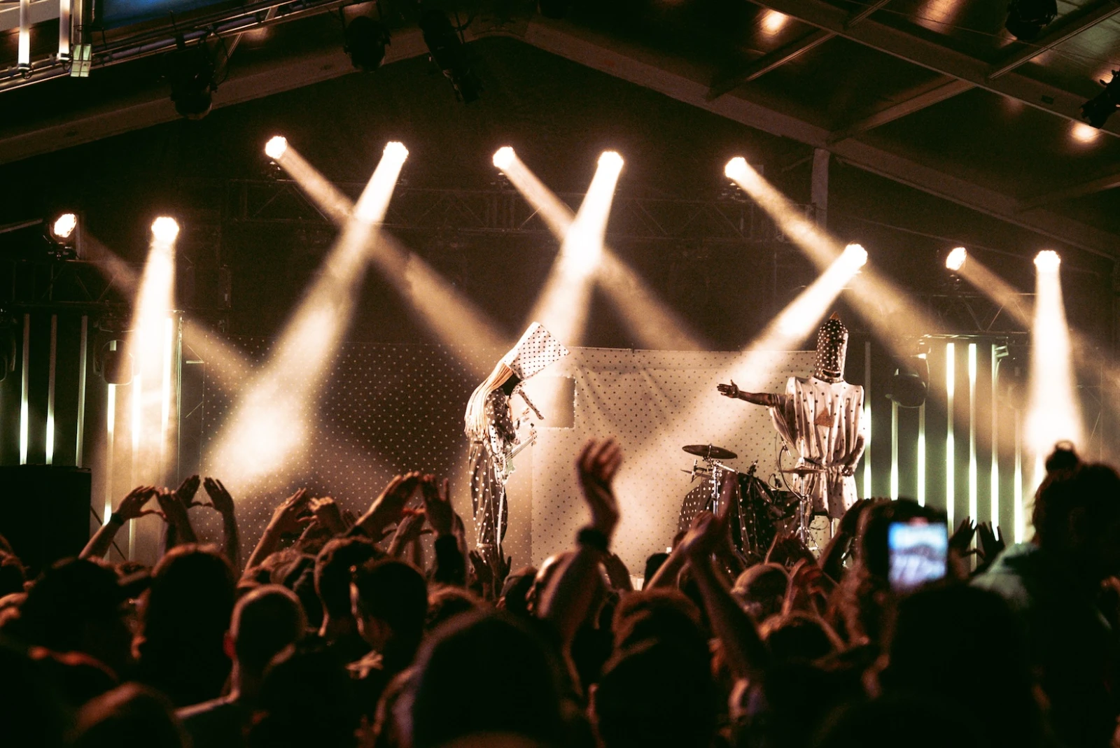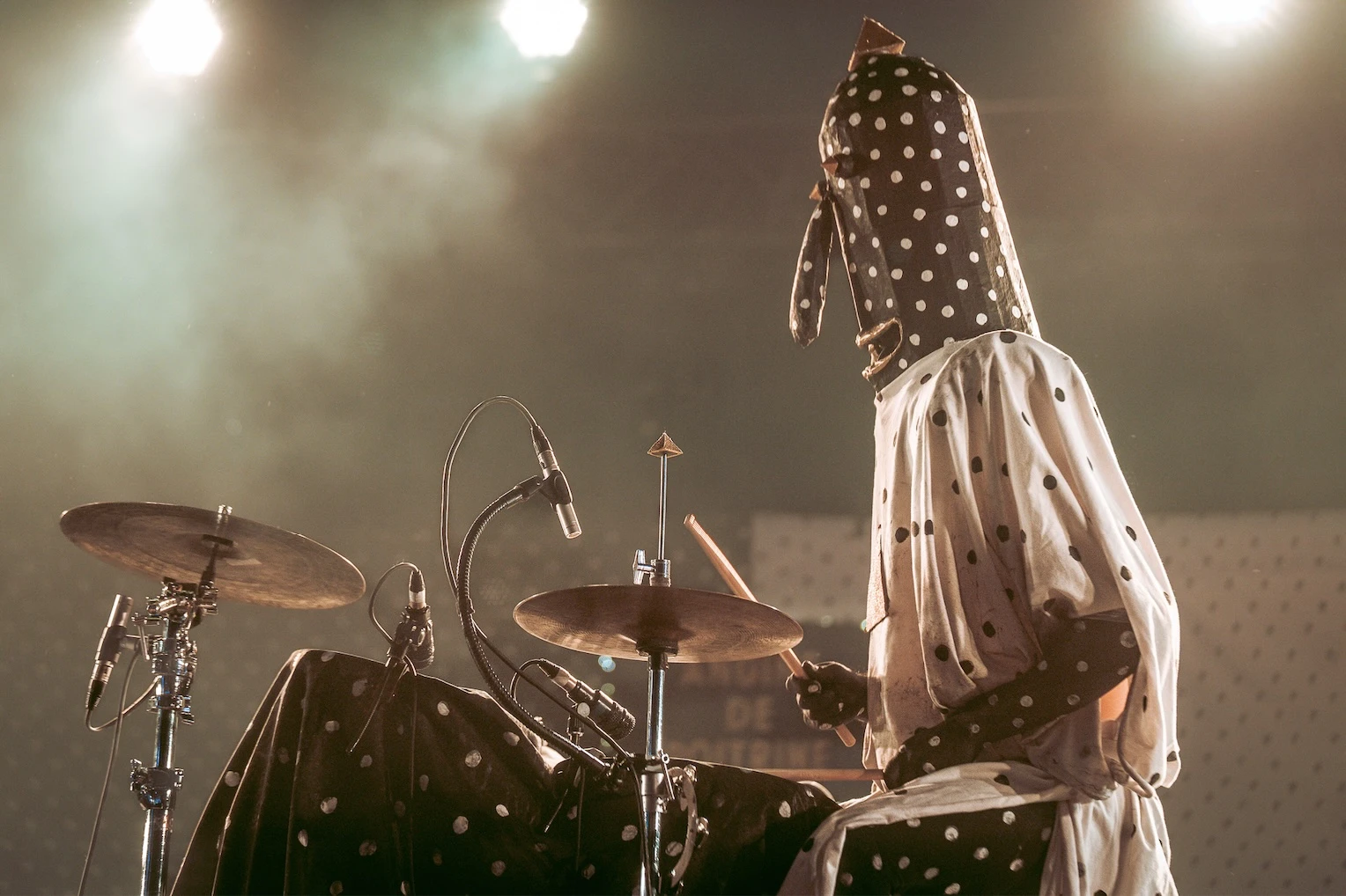 Leur drap picoté signature s’étire derrière eux, leur esthétique bichrome inversée claque sous les projecteurs. Angine de Poitrine arrive, mains levées en triangle. Un salut codé aussitôt renvoyé par les initiés des premiers rangs.