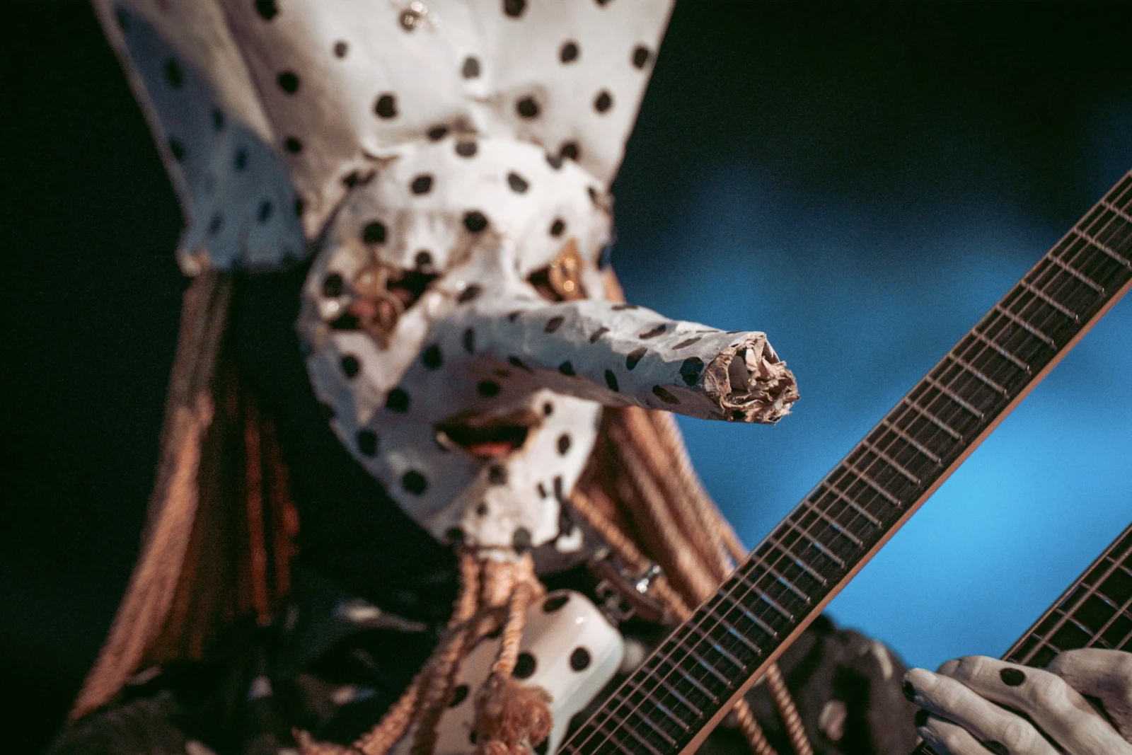 « Les costumes existent parce que la musique existe. On présente un spectacle. Y a une esthétique réfléchie, une direction artistique, tsé. C’est intrigant à l’œil, ça ouvre des portes. C’est du visuel, de l’album à la merch. Pis nous, on trouve ça ben plaisant. »