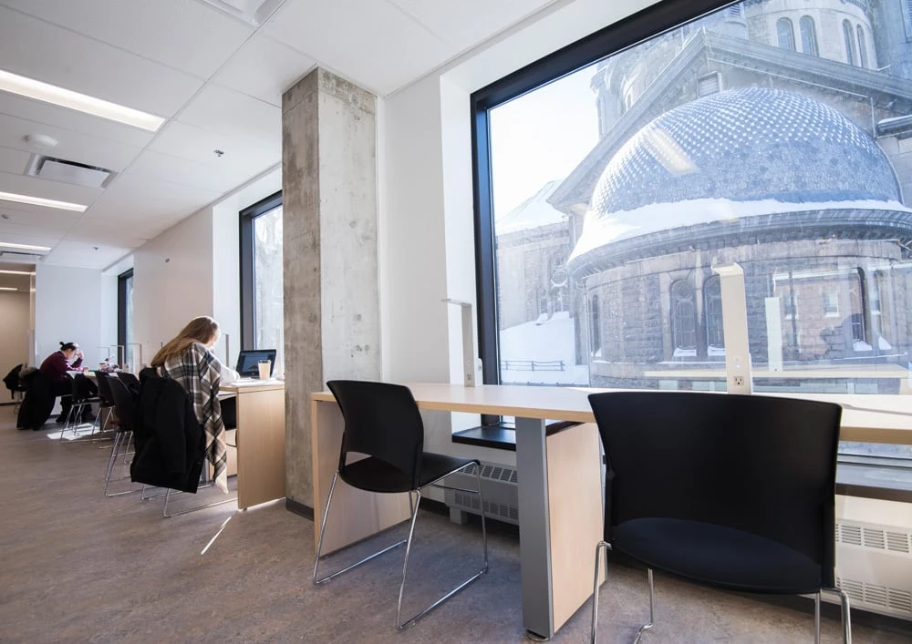Le bémol? Il n’y a pas une tonne de tables, donc si vous arrivez trop tard, vous risquez de vous retrouver à chercher une place. En plus, c’est un endroit de passage. Pas tout le monde y va pour étudier, donc si le moindre bruit vous déconcentre (comme moi), ce n’est peut-être pas votre meilleur choix.