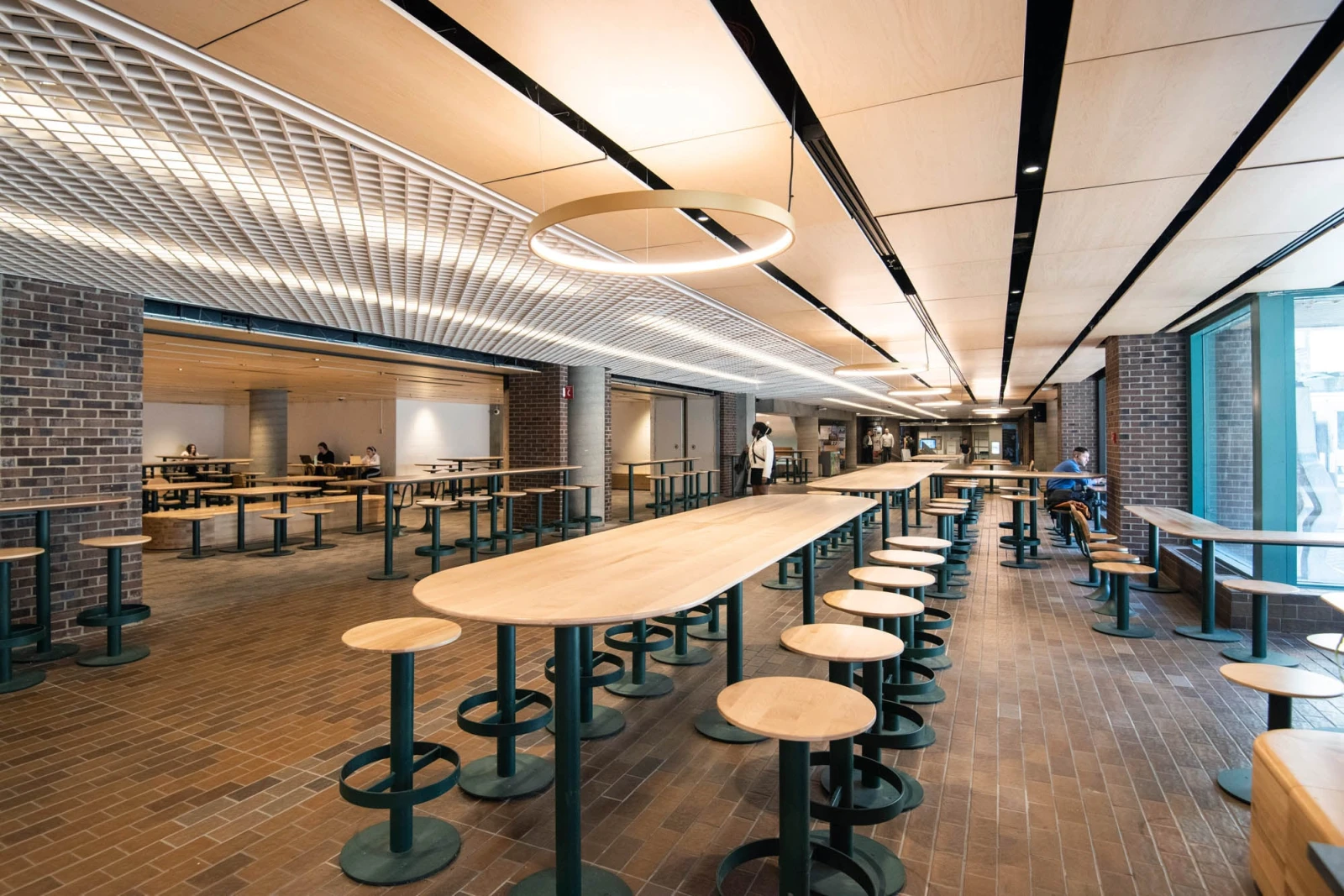 La cafétéria vient d’être rénovée et ça paraît : de grandes tables, une belle lumière et de la place pour tout le monde. C’est le genre d’endroit où on s’installe pour « juste une heure », mais on s’y retrouve toujours quatre heures plus tard.