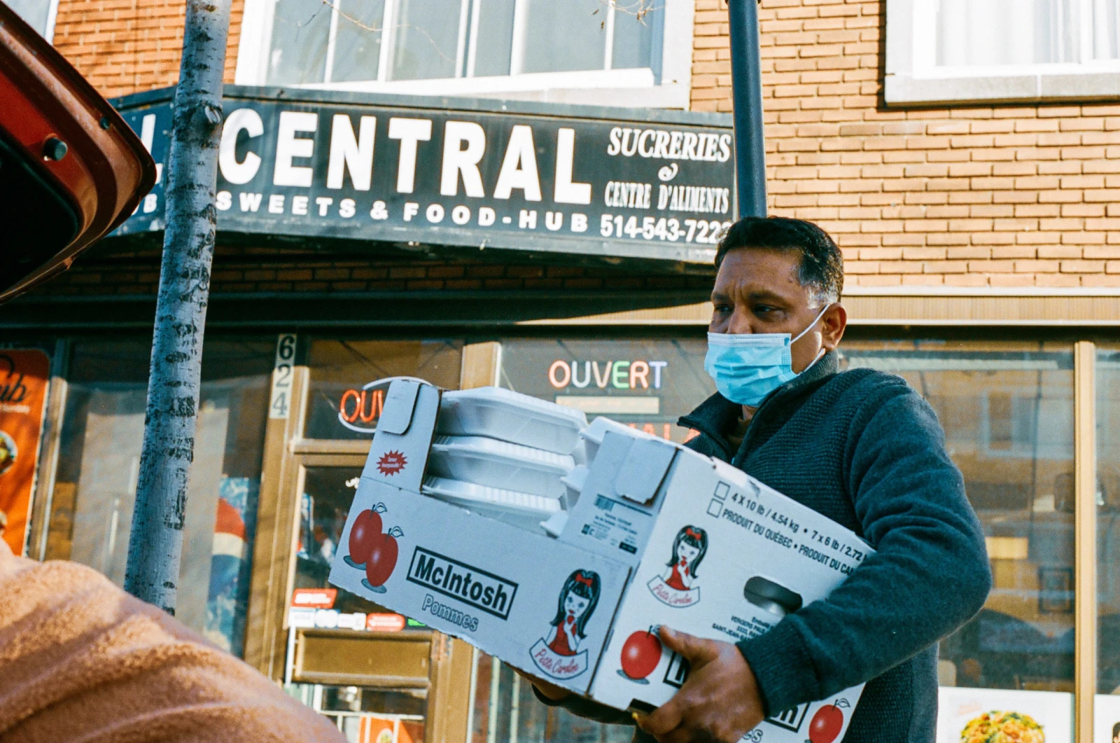 Abdul Waheed m’accueille sur Jarry devant le restaurant Sana. Avec ses acolytes Zeeshan et les deux Shahid, ils organisent chaque samedi une distribution de repas chauds nommée Les Coups de Main PEx. Aujourd’hui, cent trente-quatre plats végétariens ou halal seront livrés par une équipe de volontaires. Lorsque les dons de la communauté sont plus généreux, des fruits frais et un gulab jamun s’ajoutent au menu. Quand les fonds s’amincissent, le chef propriétaire fait crédit. « La pandémie a frappé durement le quartier, plusieurs ont perdu leur emploi. Ce soutien alimentaire est un baume pour aider à payer les factures », précise l’organisateur me tendant un lassi à la mangue.