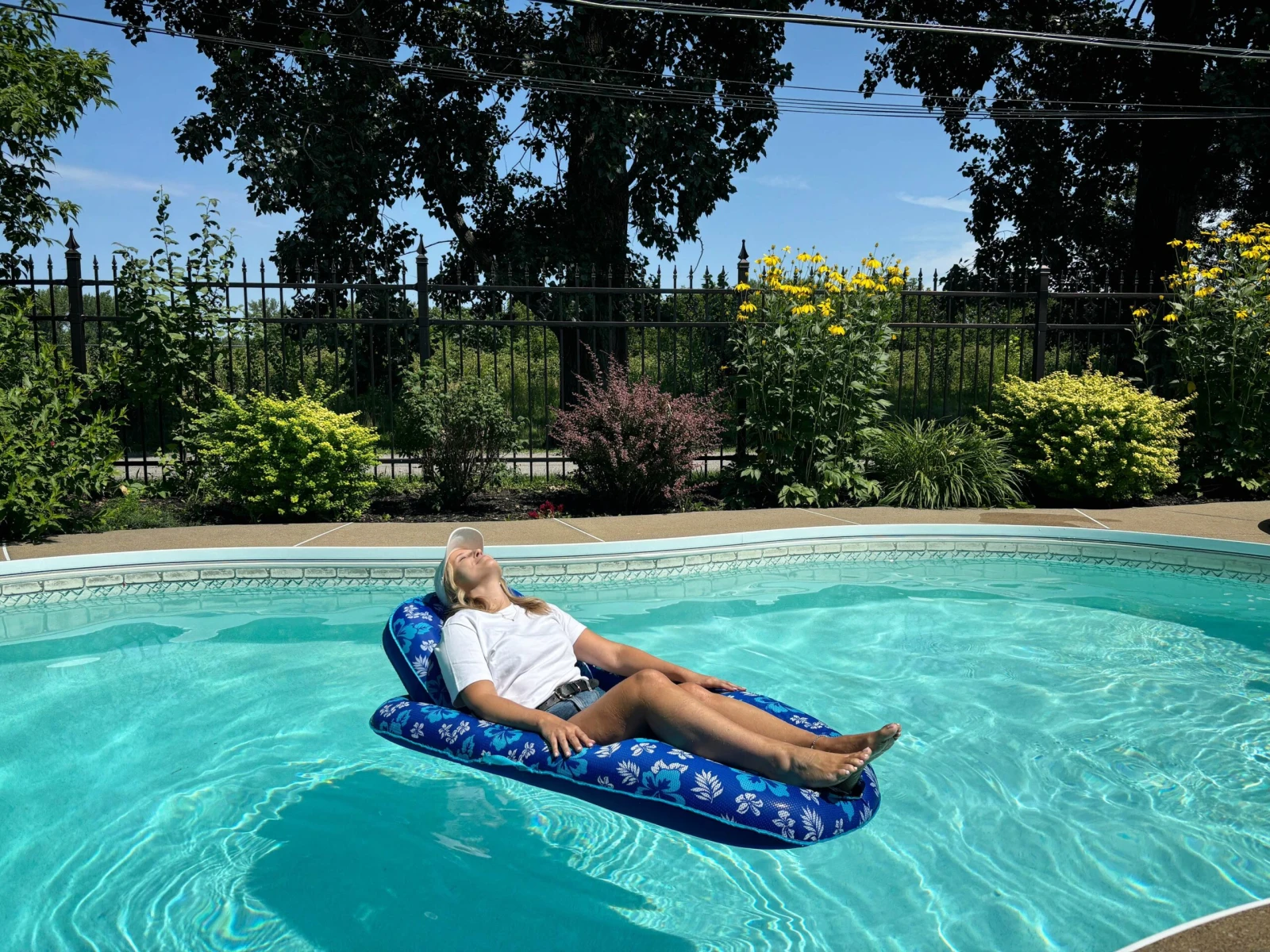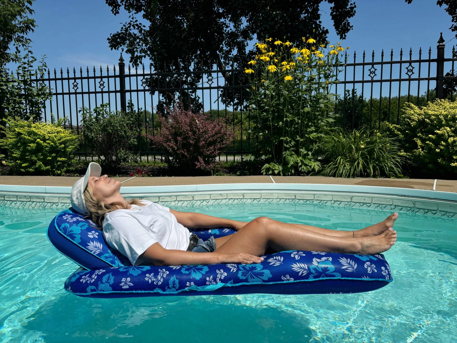 Pour lui donner l’illusion d’être un peu en vacances, on s’est donné rendez-vous chez sa mère, Marie-Josée, et son beau-père, Gilles, au bord de leur piscine de La Prairie, sur la Rive-Sud de Montréal.
