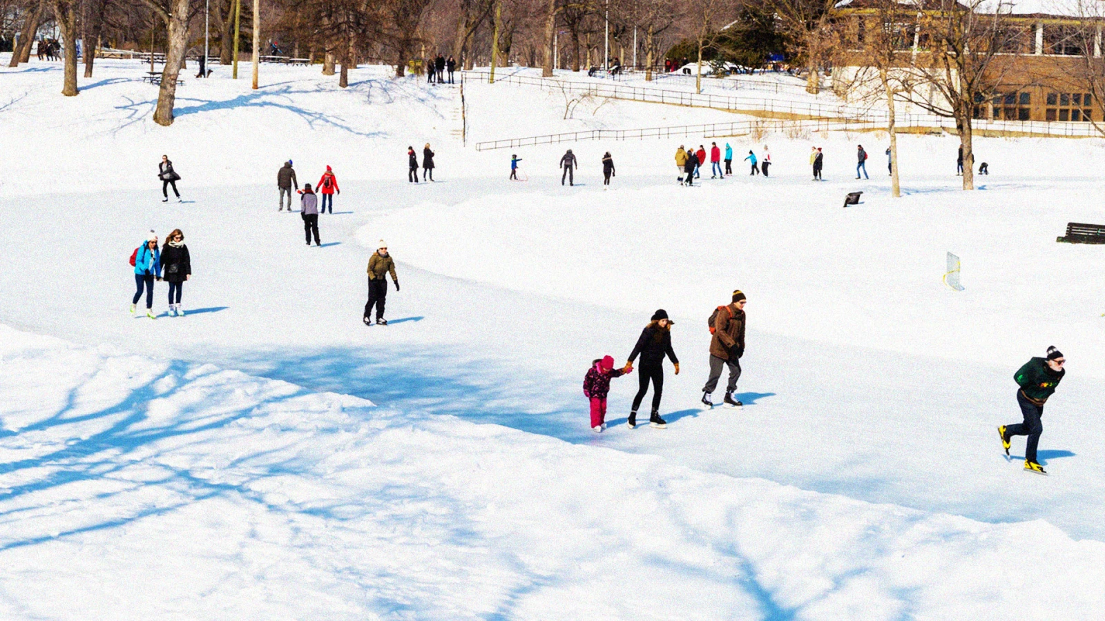 C’est une parfaite journée d’hiver pour prendre une petite pause patin au parc sur l’heure du lunch. Le soleil est sorti, il ne fait pas trop froid et le vent est tombé.