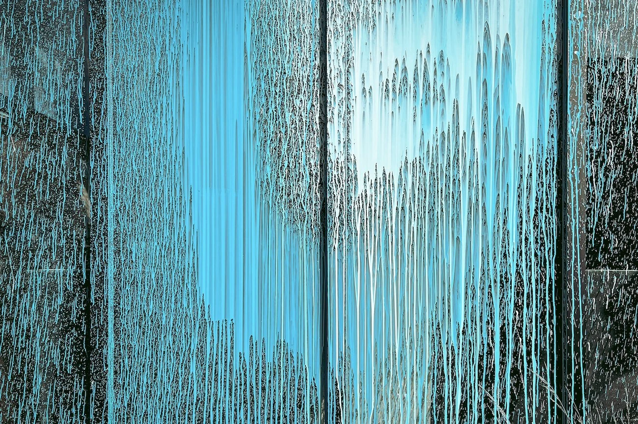 Comme elle, je m’immobilise à l’intersection d’Ontario et de Chambly, en plein cœur d’Hochelaga, médusé par les larges éclaboussures de peinture qui sèchent sur la façade devant nous. Cette œuvre, que l’on pourrait nommer Bleu et blanc sur briques neuves, porte la signature distincte d’un extincteur à incendie bidouillé. Pendant la nuit, l’activisme du quartier a frappé.