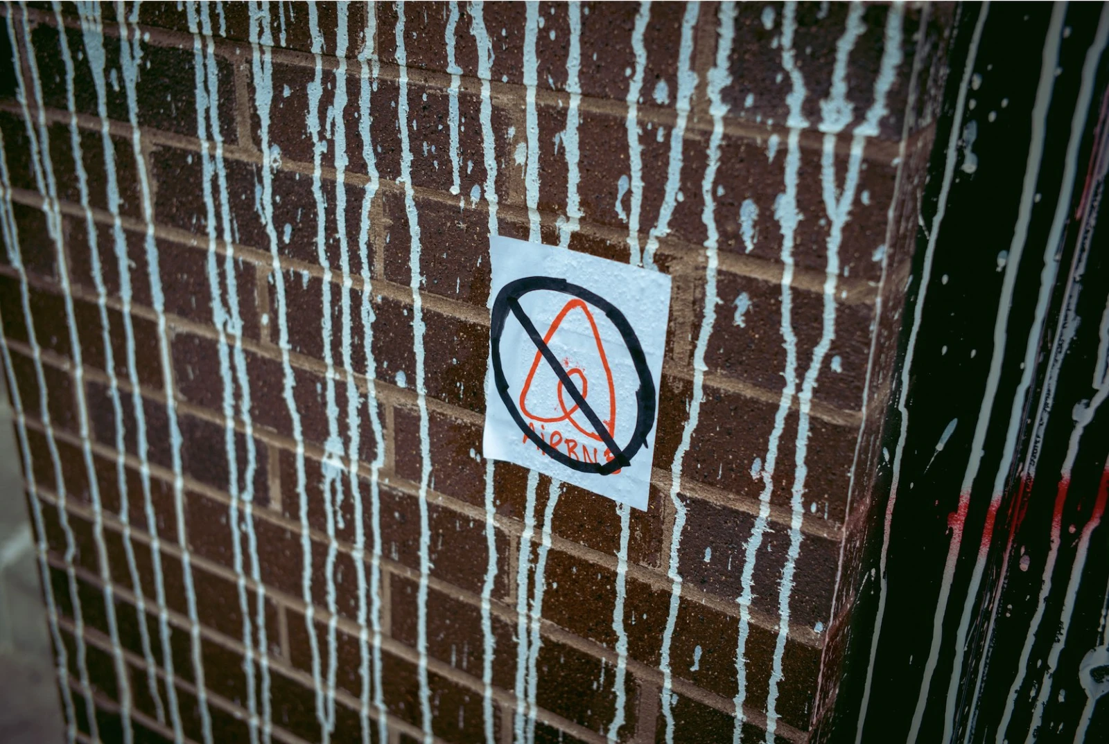 Dans le petit local à un jet de pierre de l’indémodable Piroz Pizzeria, huit citoyens s’activent à définir le bon slogan anti-Airbnb.