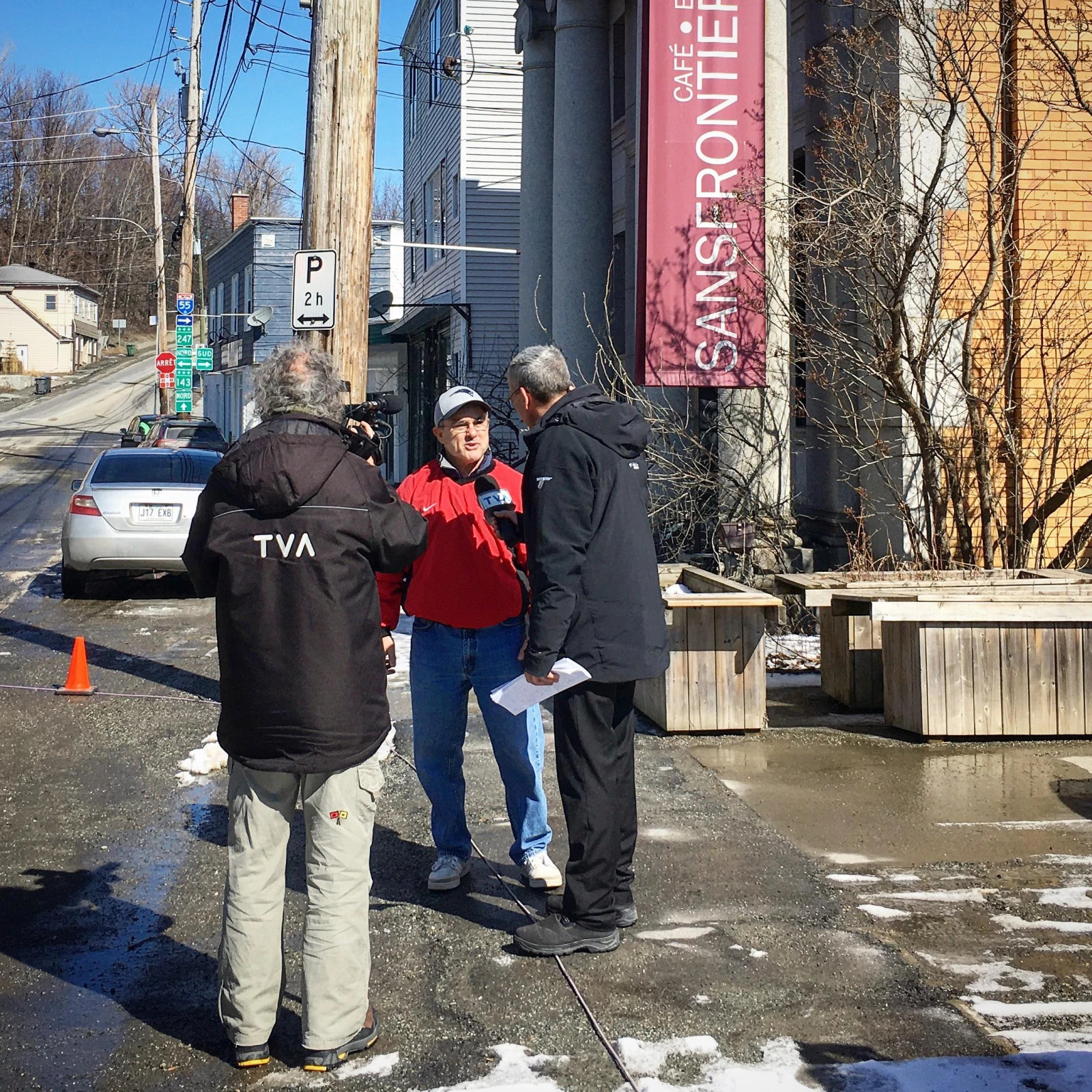 Une équipe de TVA traine aussi dans le coin et tente aussi de prendre le pouls de ce qui se passe.